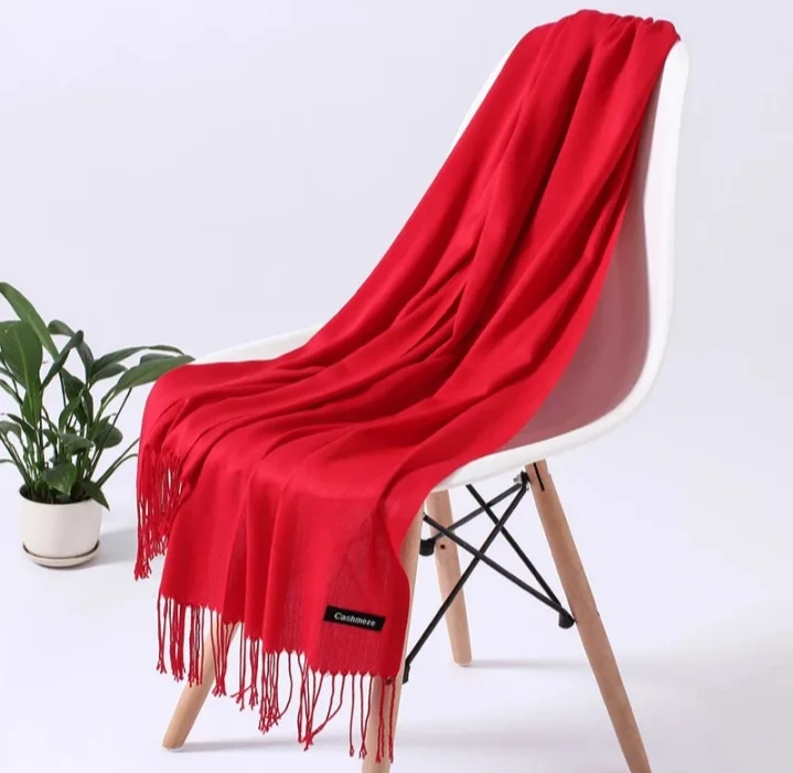 Women Solid Scarf Cashmere Feeling Pashmina Shawls Tassel Hijab Head Wraps Femme Thin Spring Winter Scarves Foulard Bufanda
