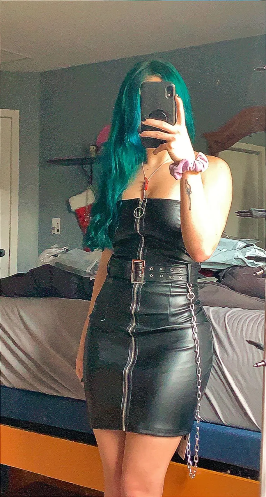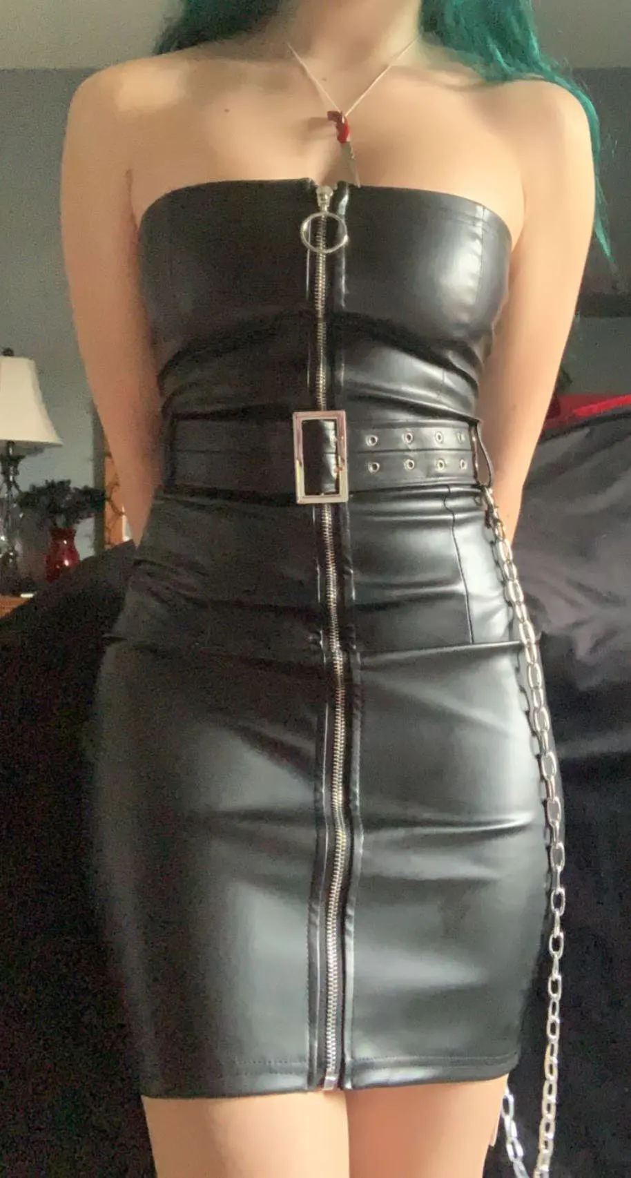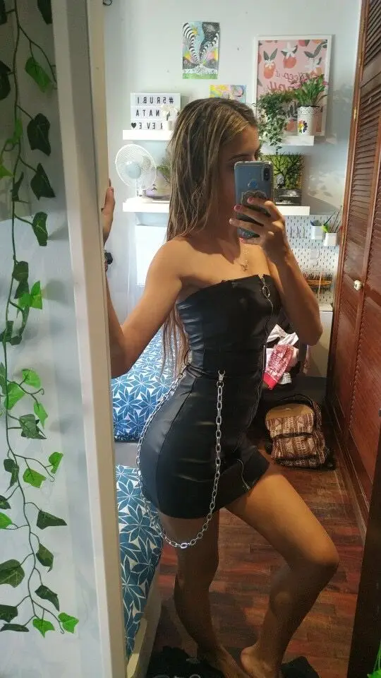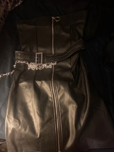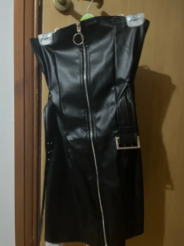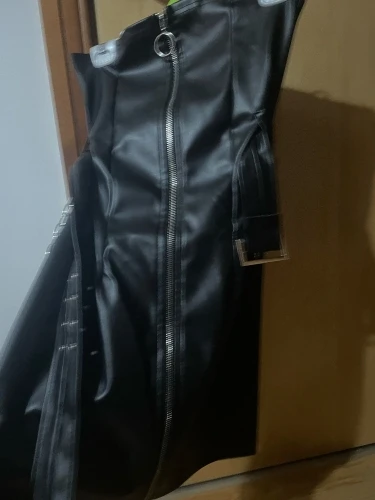 Women Spring Goth Style Black PU Leather Zipper Dress 2022 New Fashion Metal Chain Decoration Punk girl Sleeveless Dress Vestido