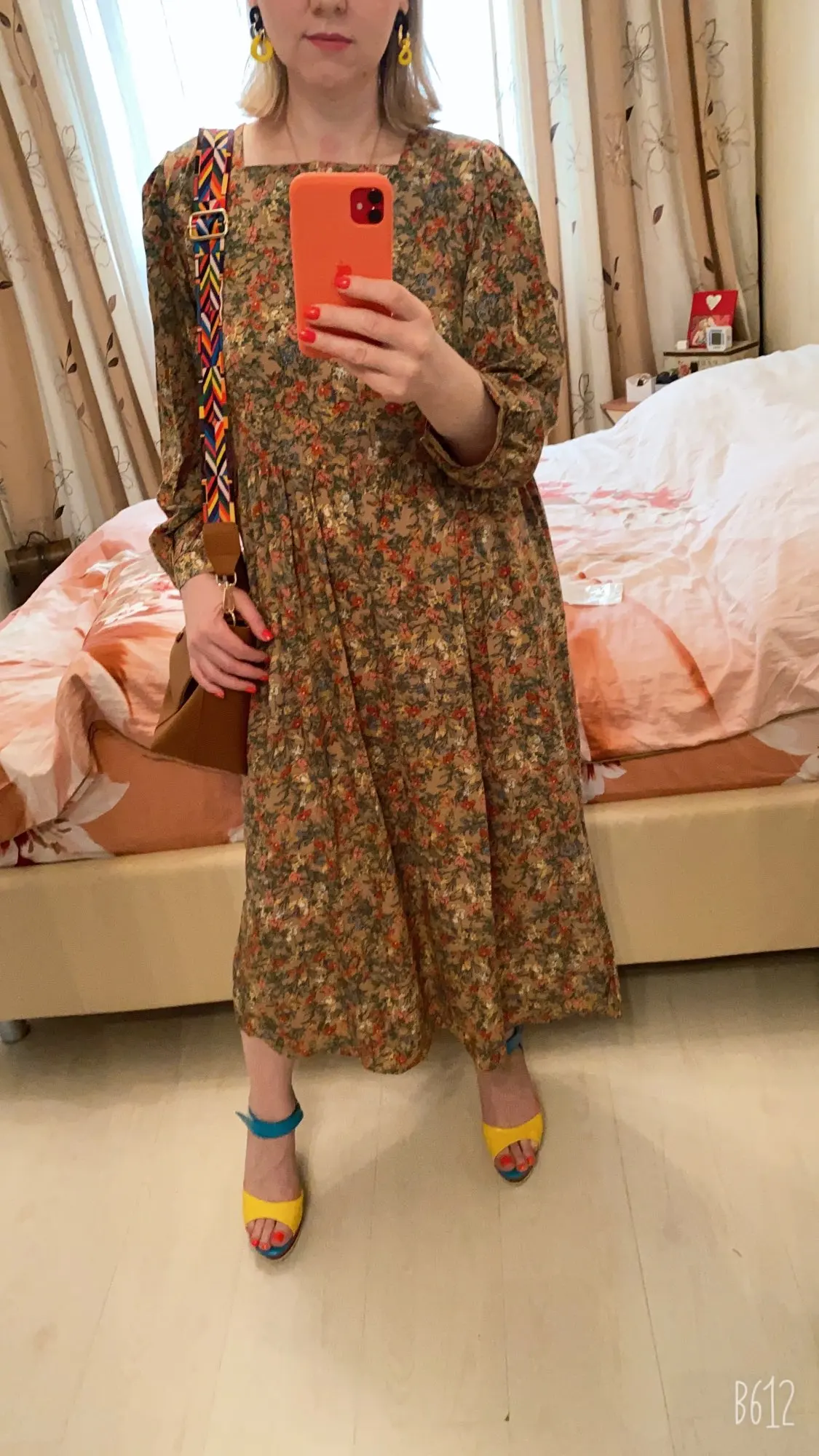 Women Spring Square Collar Long Sleeve Long Floral Dresses Elegant vintage High Waist Ruffle Dresses with Waist Belt