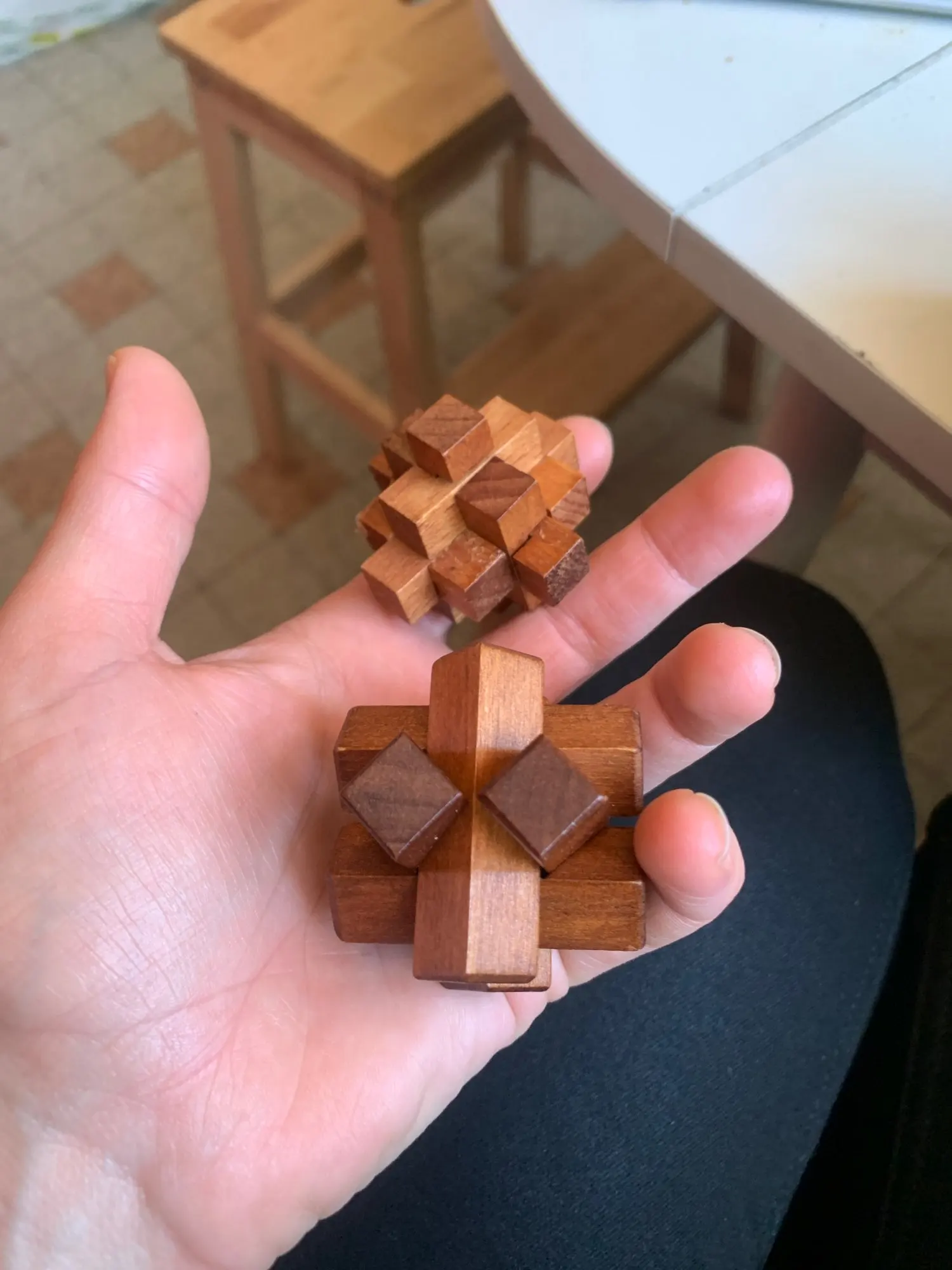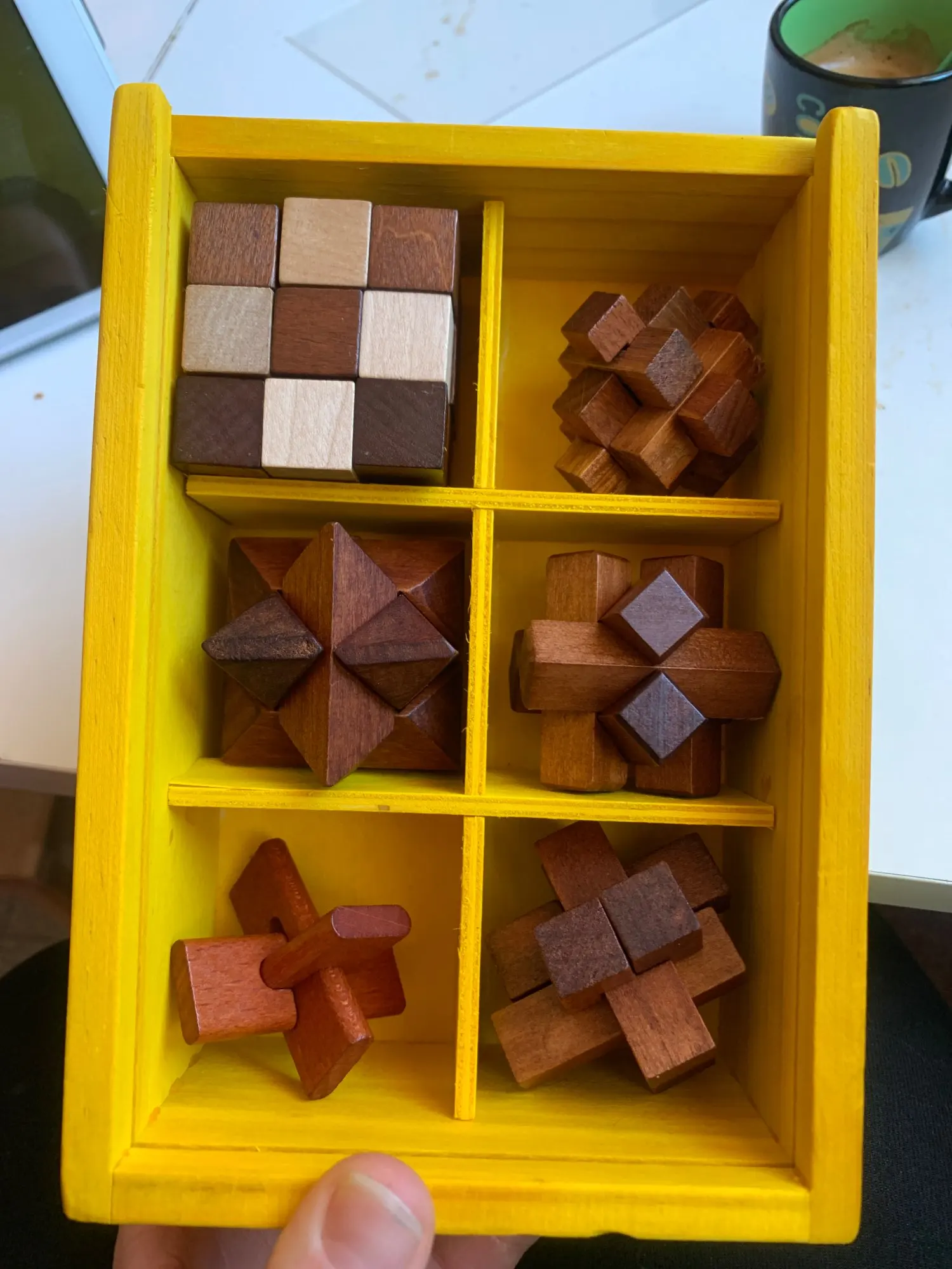 Great puzzles, well made. Spent about an hour trying to figure out the 3x3 cube puzzle, twisting pieces, and it didn't break.