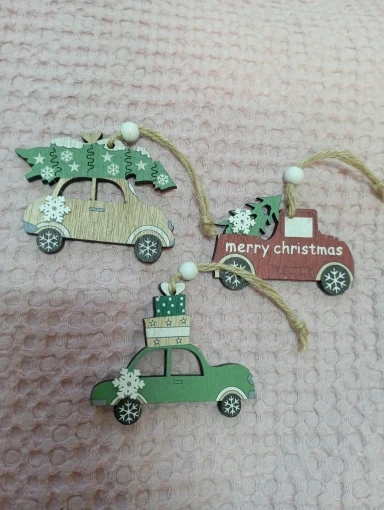 Wooden Little Train Christmas Decorations for Home DIY Wood craft Painted Train Santa Kids Toys New Year kids gift Ornaments