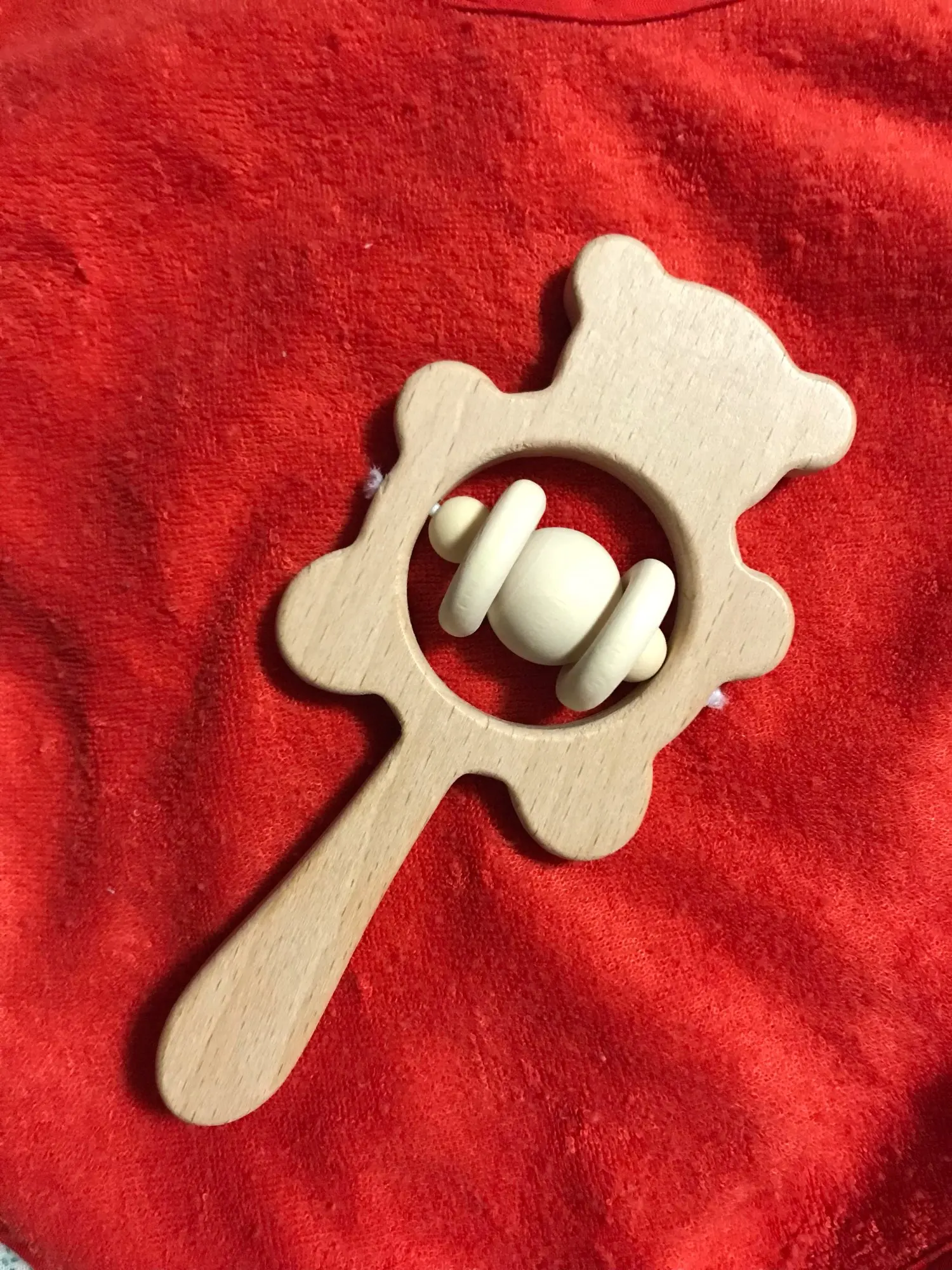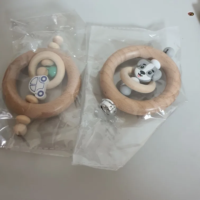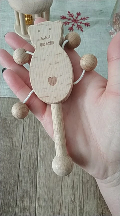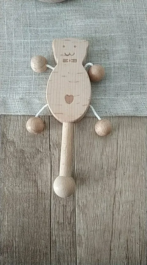Wooden Rattle Baby Toys 1pc Beech Bear Hand Teething Wooden Ring Baby Rattles Play Gym Montessori Toy Stroller Educational Toys