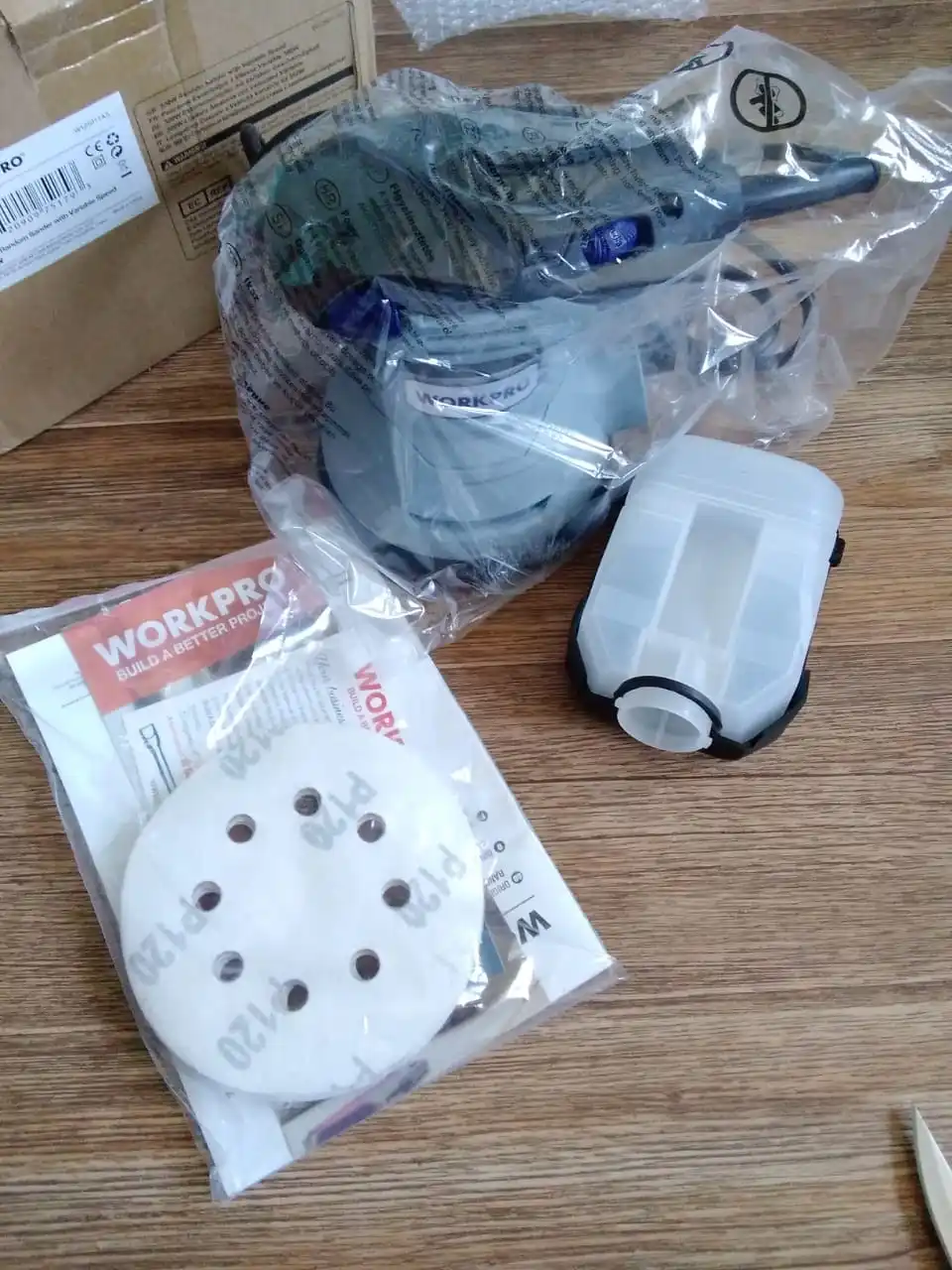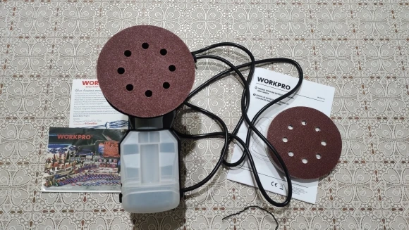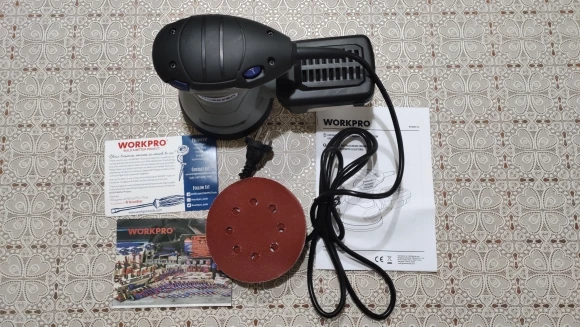 WORKPRO 300W Random Sander with Variable Speed Random Orbit Sander with 10PC sandpaper Dust exhaust and Hybrid dust canister