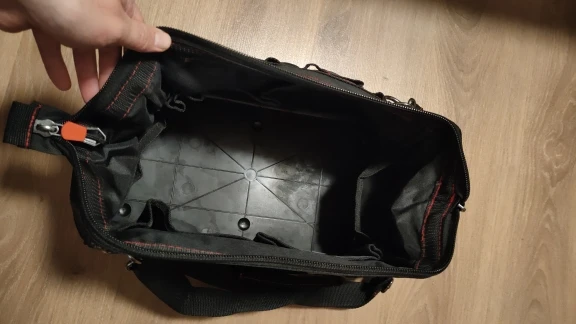 This bag is of remarkably high quality. The base is a strong plastic single piece and the zipper is thick and strong. I recommend.