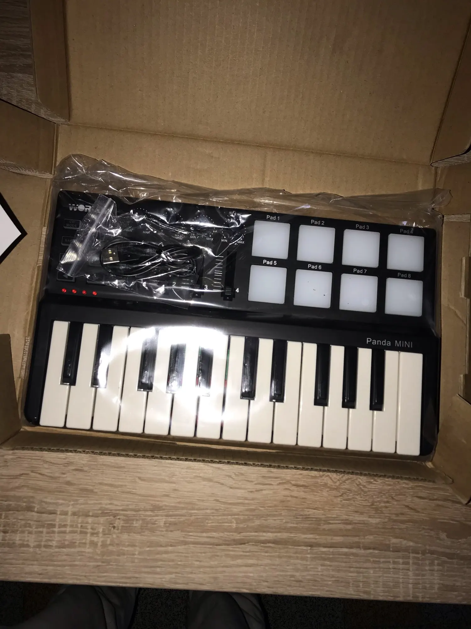 WORLDE Panda MINI 25-Key Ultra-Portable USB MIDI Keyboard MIDI Controller 8 Colorful Backlit Trigger Pads