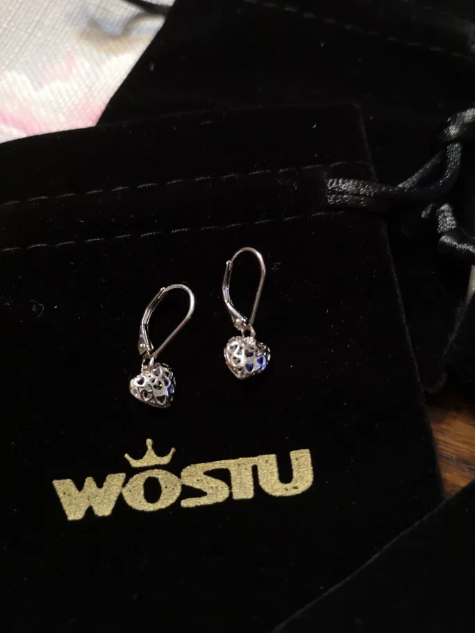WOSTU Openwork Heart Drop Earrings 925 Sterling Silver For Women Wedding Luxury Earrings Genuine Jewelry Gifts FIE746