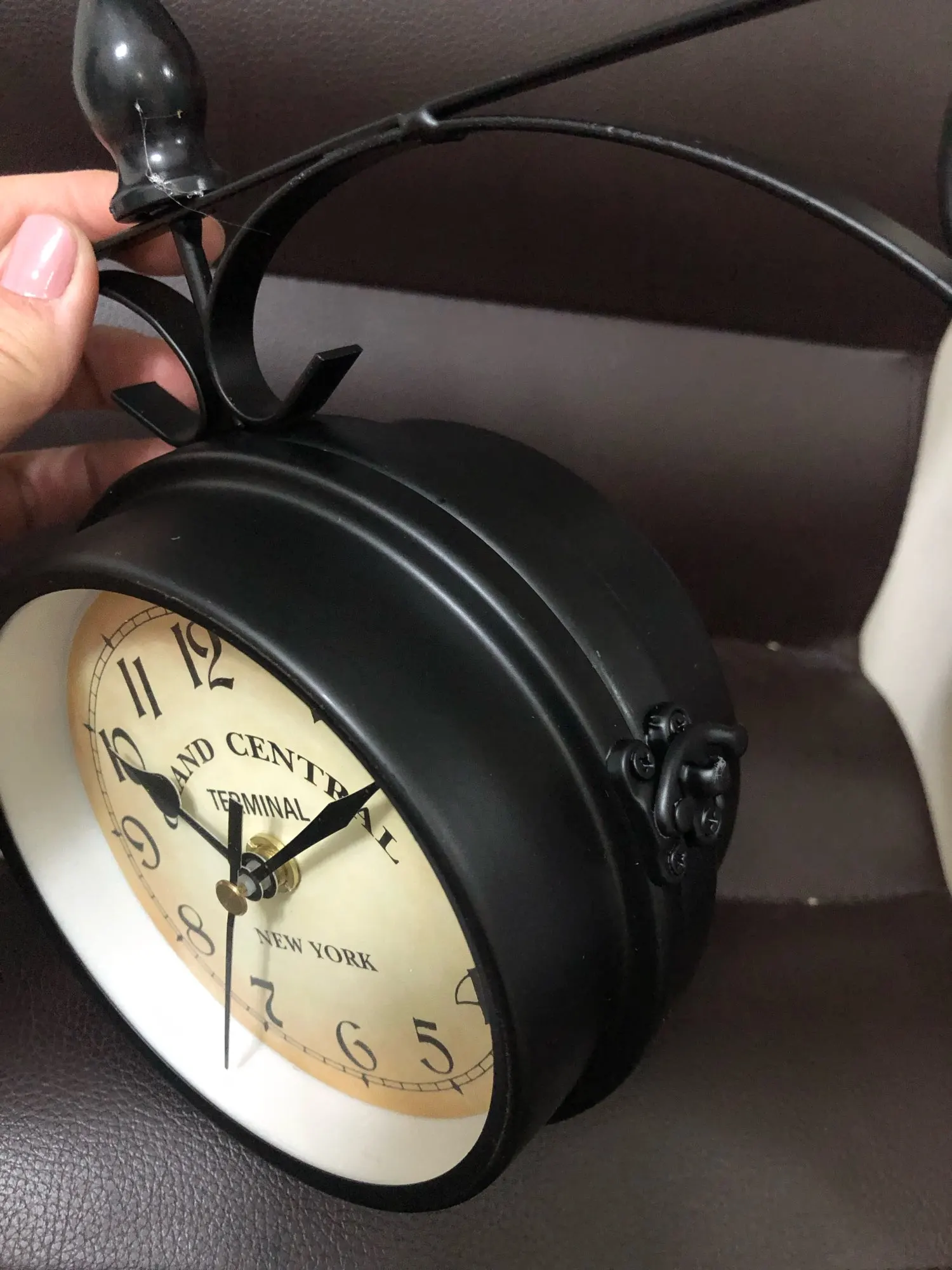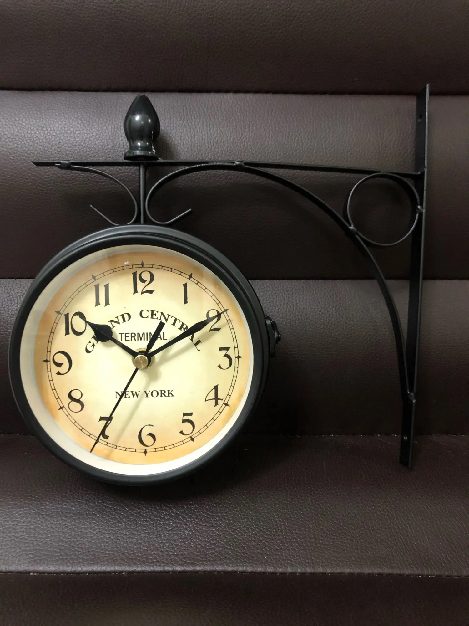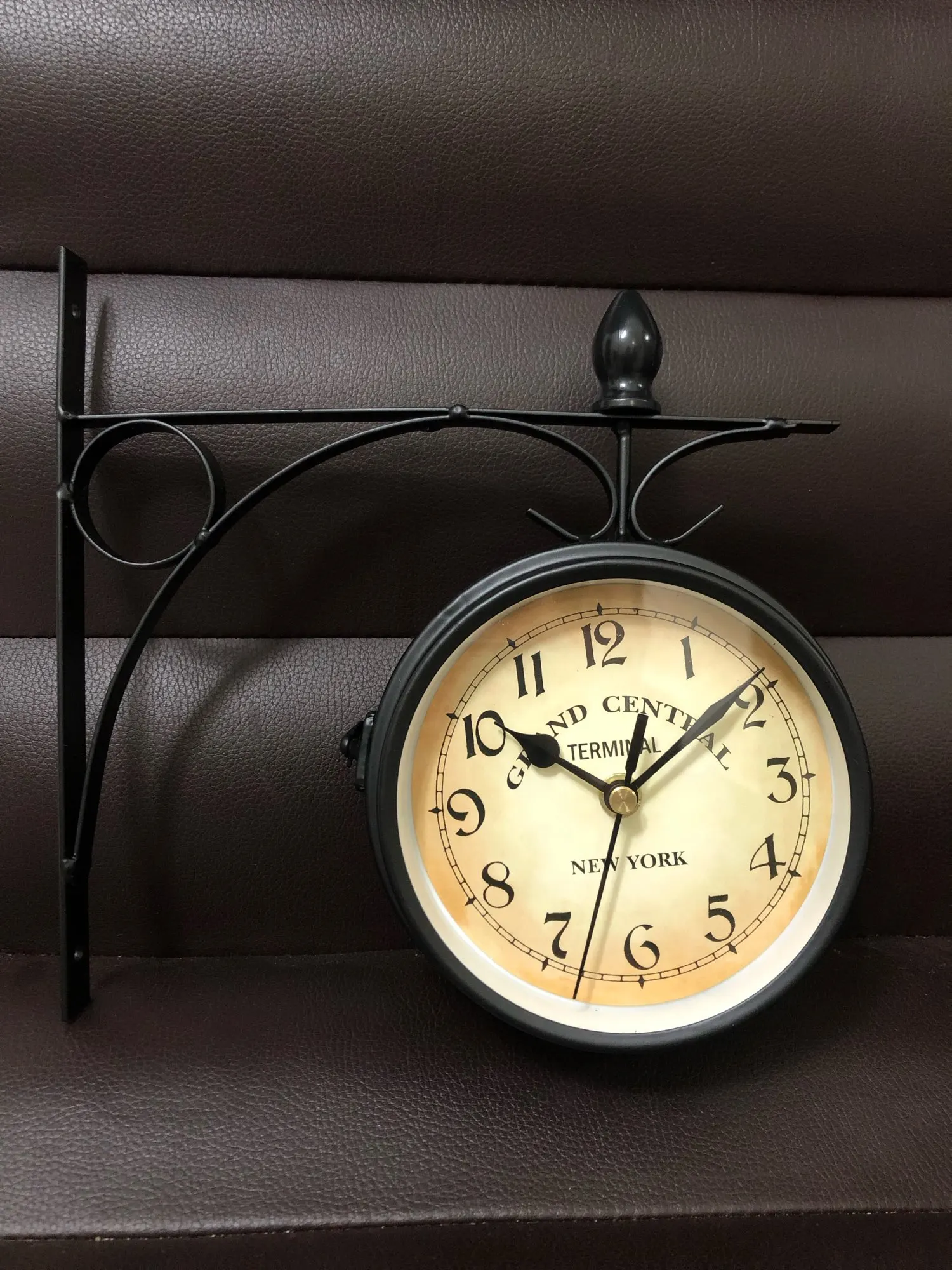 Wrought Iron Antique-Look Round Wall Hanging Double Sided Faces Retro Station Clock Chandelier Wall Hanging Clock