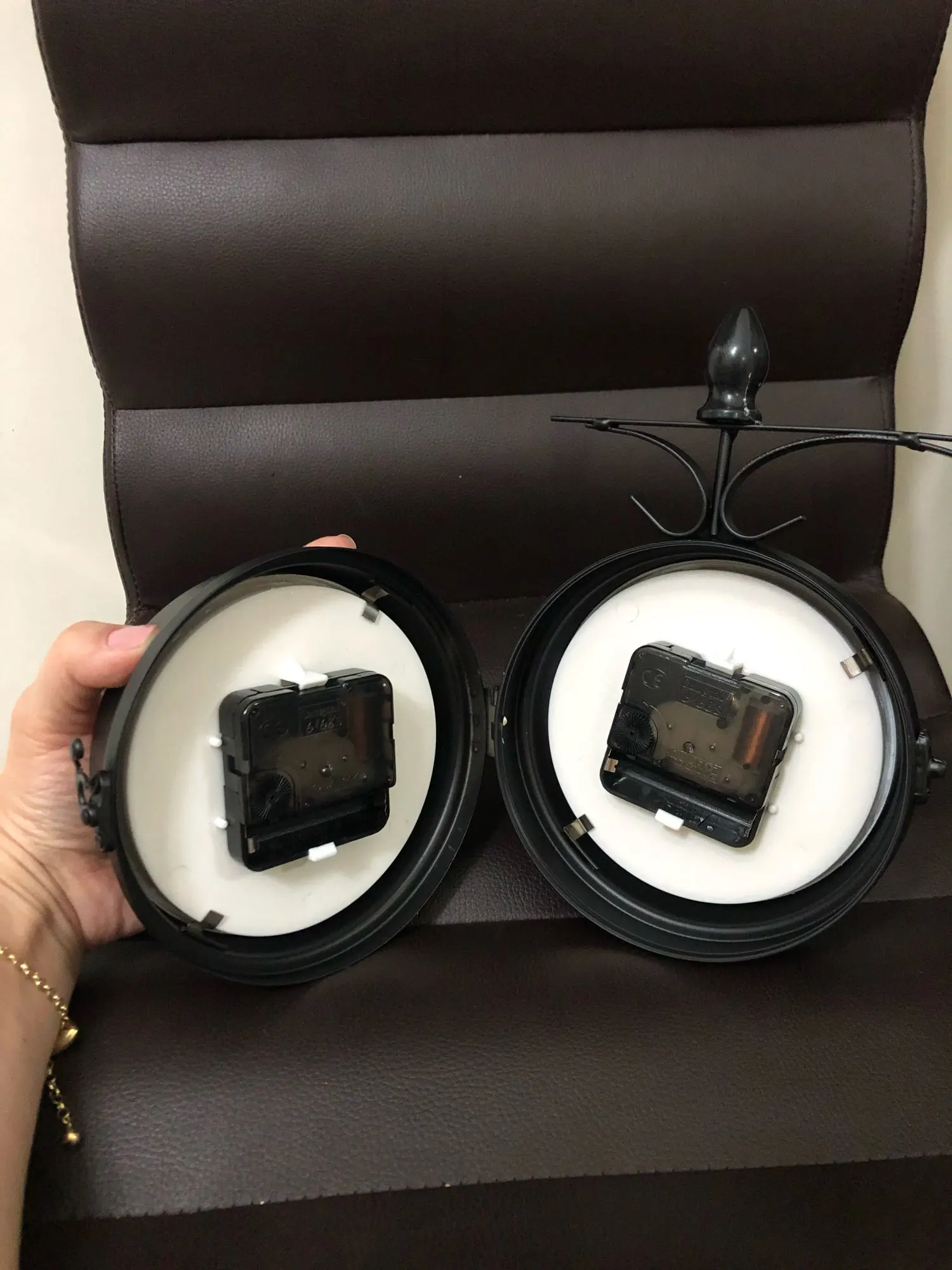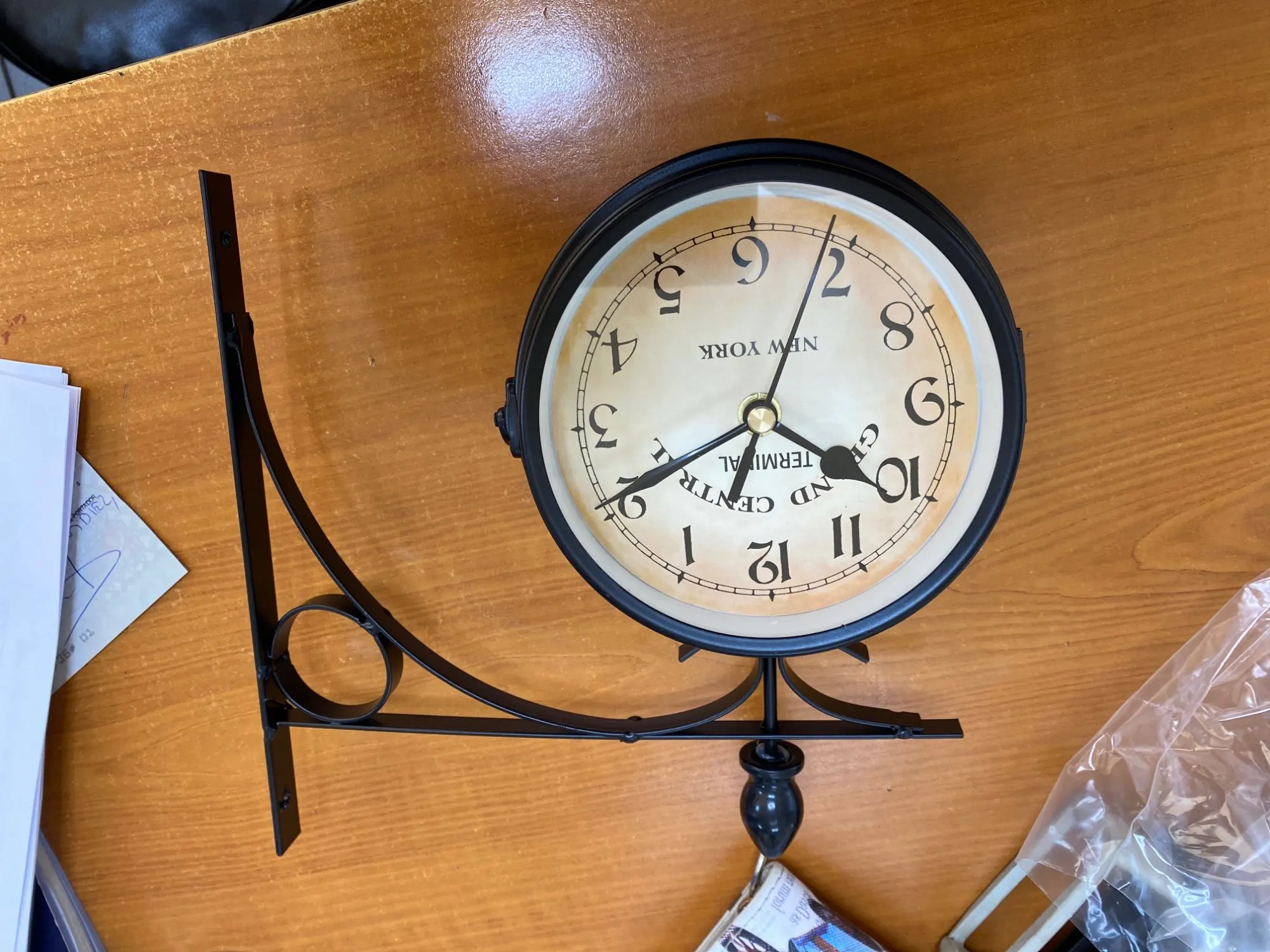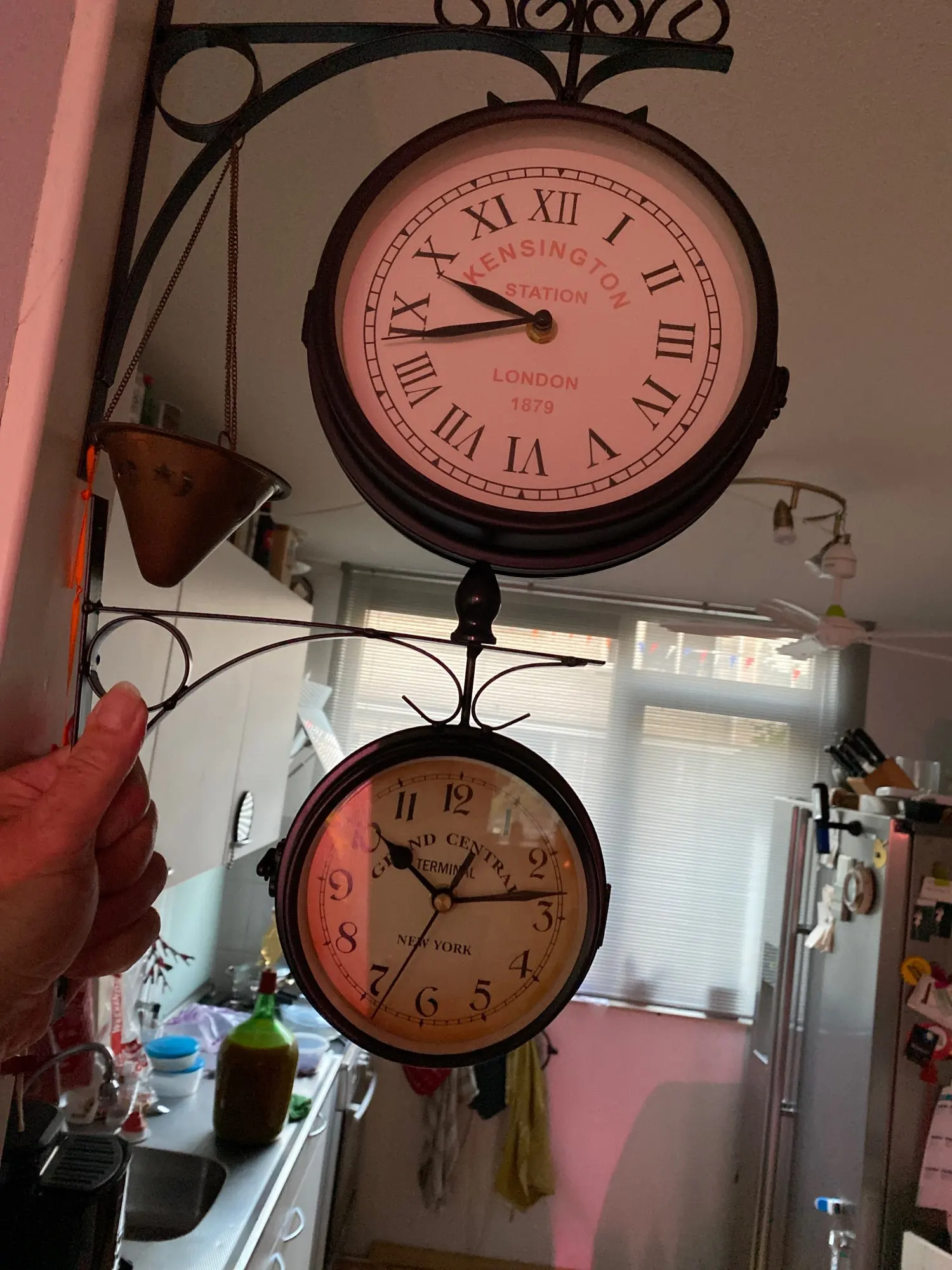 Wrought Iron Antique-Look Round Wall Hanging Double Sided Faces Retro Station Clock Chandelier Wall Hanging Clock