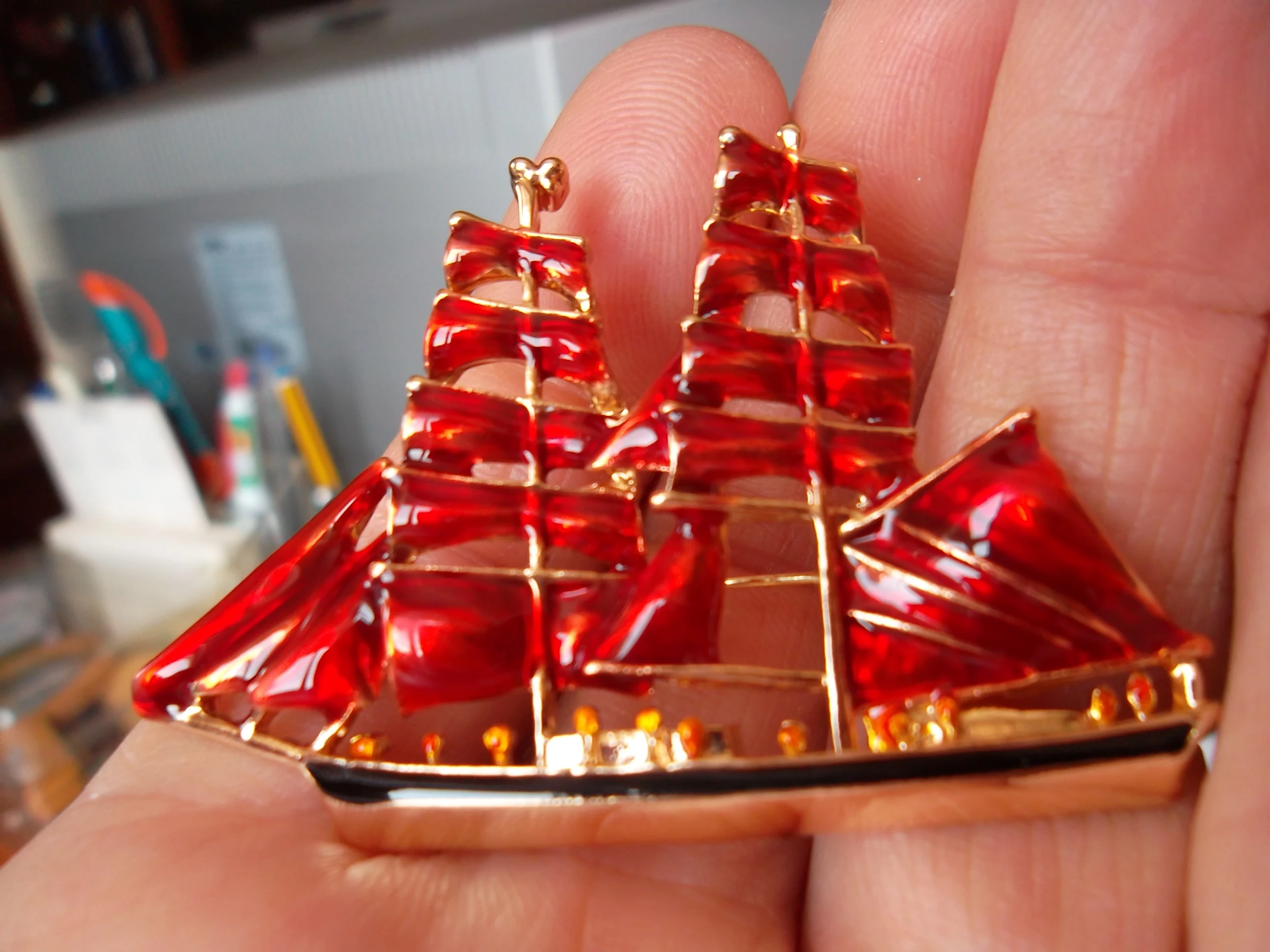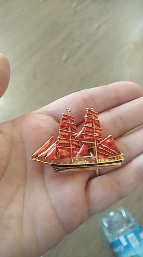 Wuli&baby Алые Паруса Big Red Sailboat Brooches Women Alloy Enamel Boat Brooch Pins Gifts