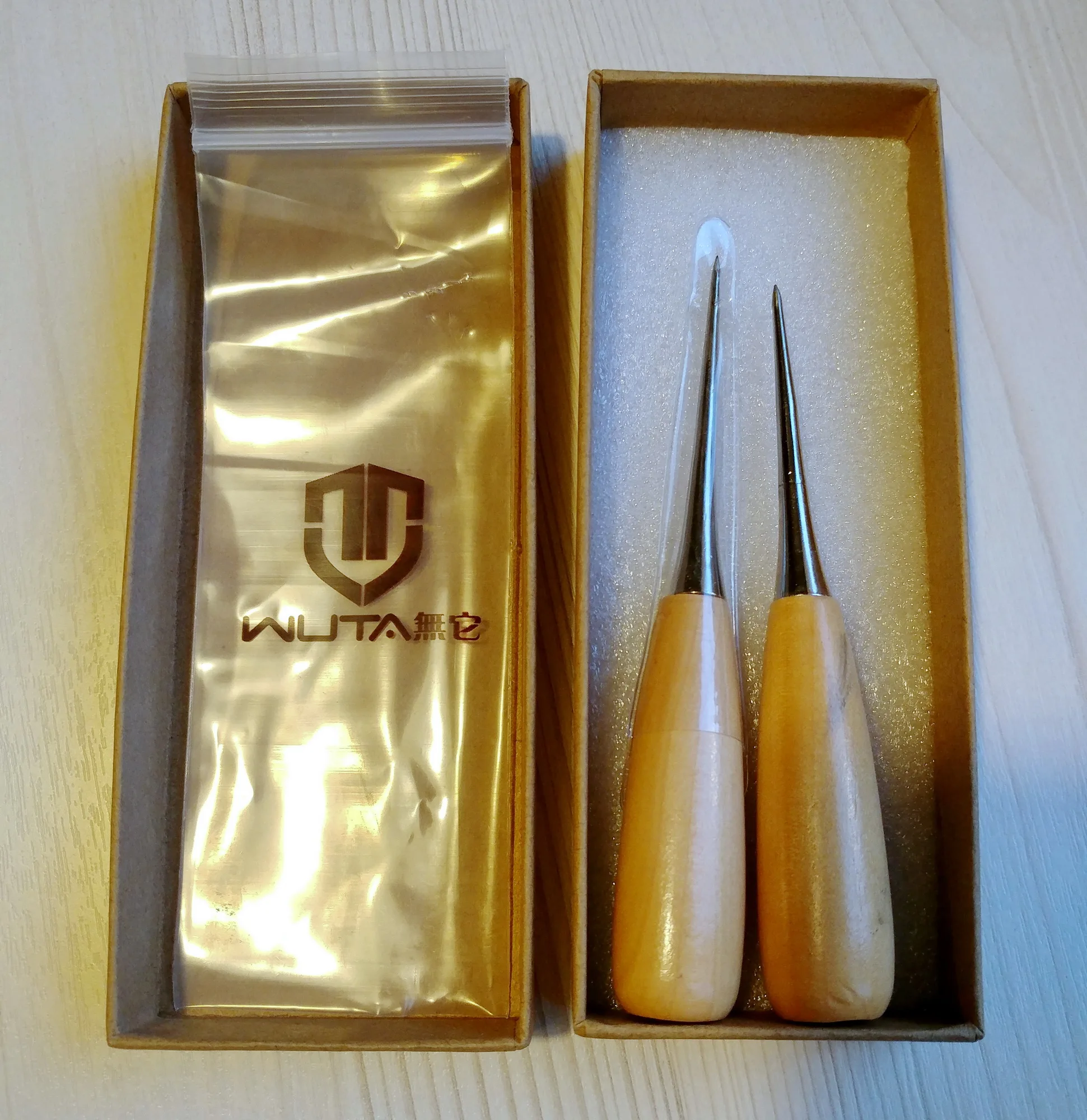 WUTA 2pcs Leather Awl Stitching Tool Leather craft Hole Punch Tools Sewing Punching Hole Maker Stitching Over stitch Wood Handle