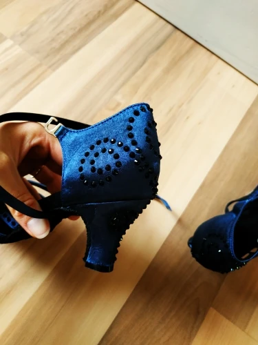 WUXIJIAO Salsa Dance SParty Dance Shoes Satin Shining rhinestones Soft Bottom Latin Dance Shoes Woman Salsa heel 5cm-10cm