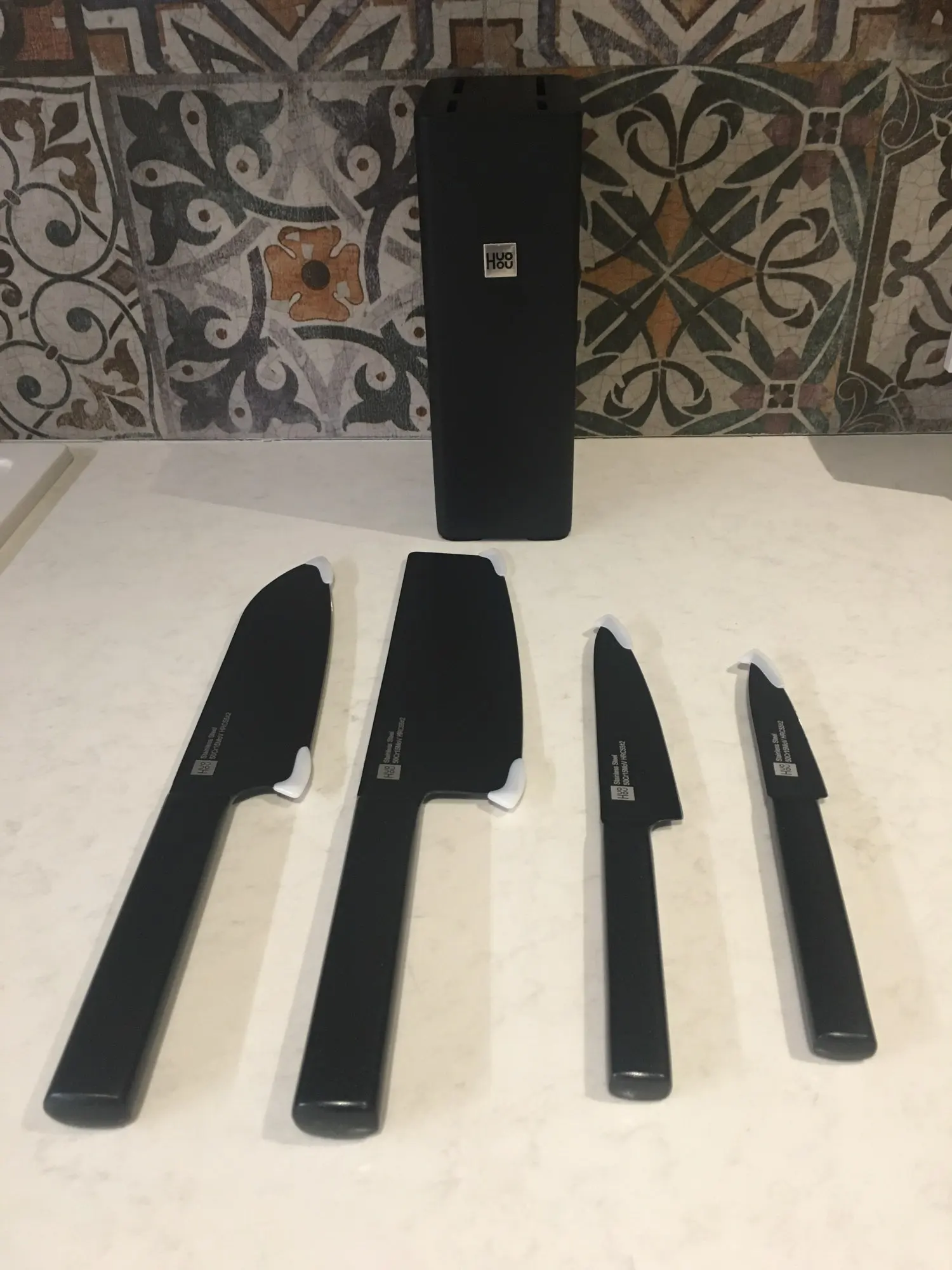 Xiaomi Huohou Cool Black Kitchen Non-Stick Knife With Knives Holder Stainless Steel Chef Knife Set Fruit 307mm Slicing Tools