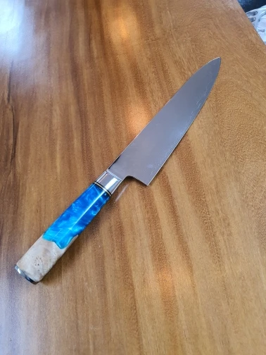 I like this knife. It feels good, cuts nicely, cleans up well. It is sharp, out of the box. It looks good, good pricing, faster shipping than expected. All around good experience. I will do business with again.