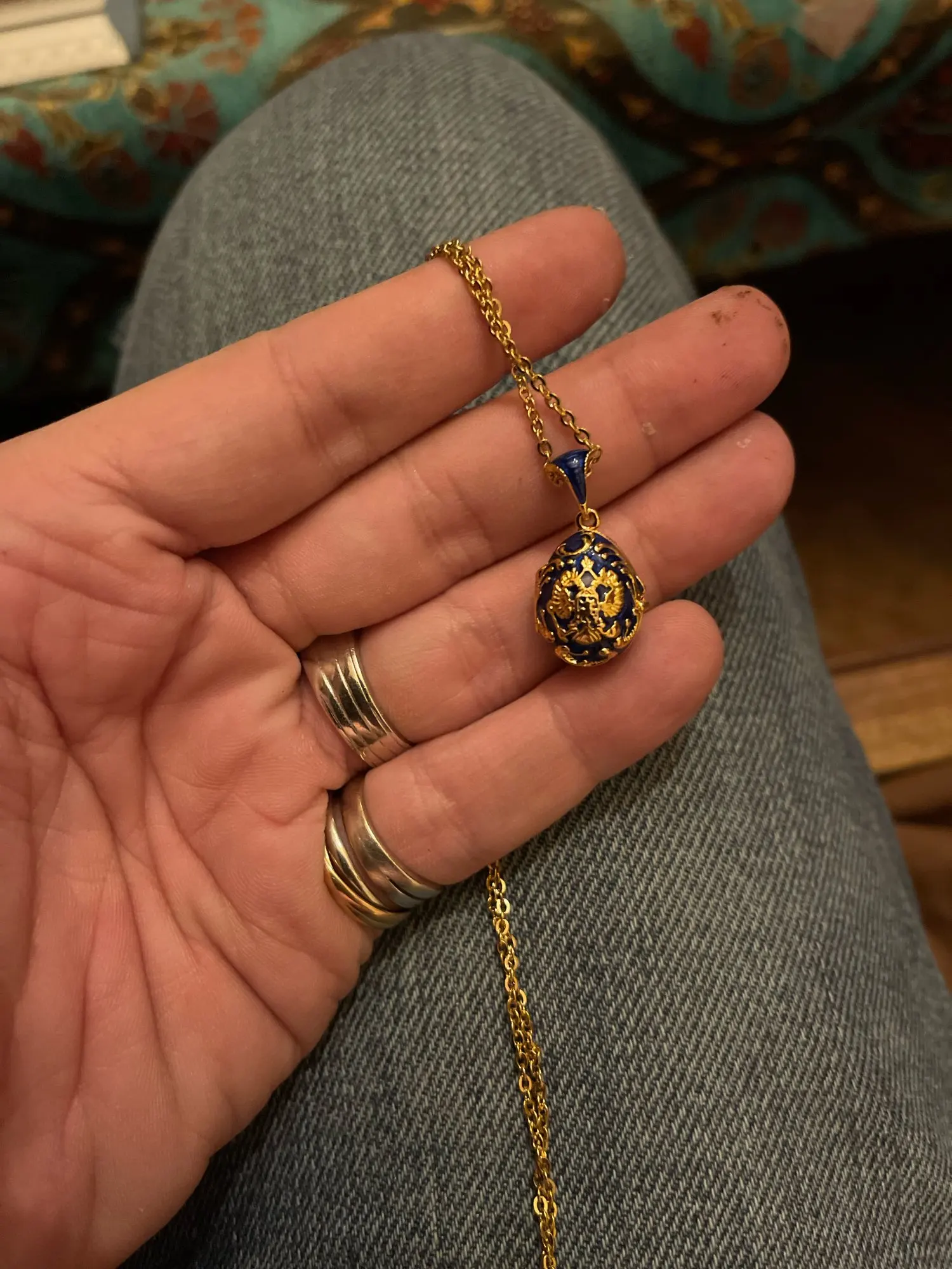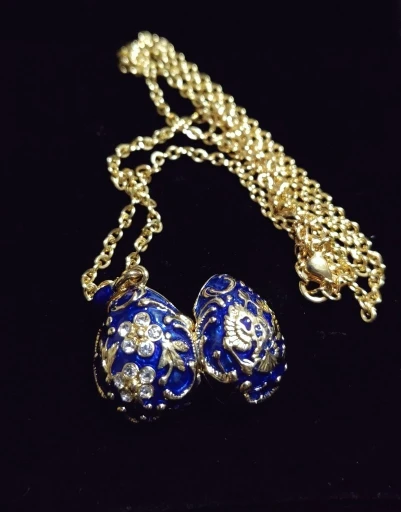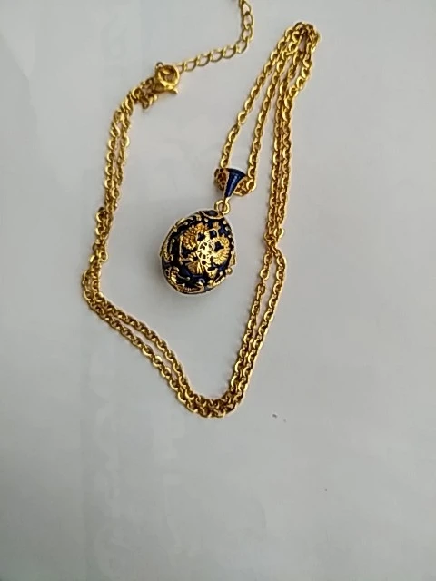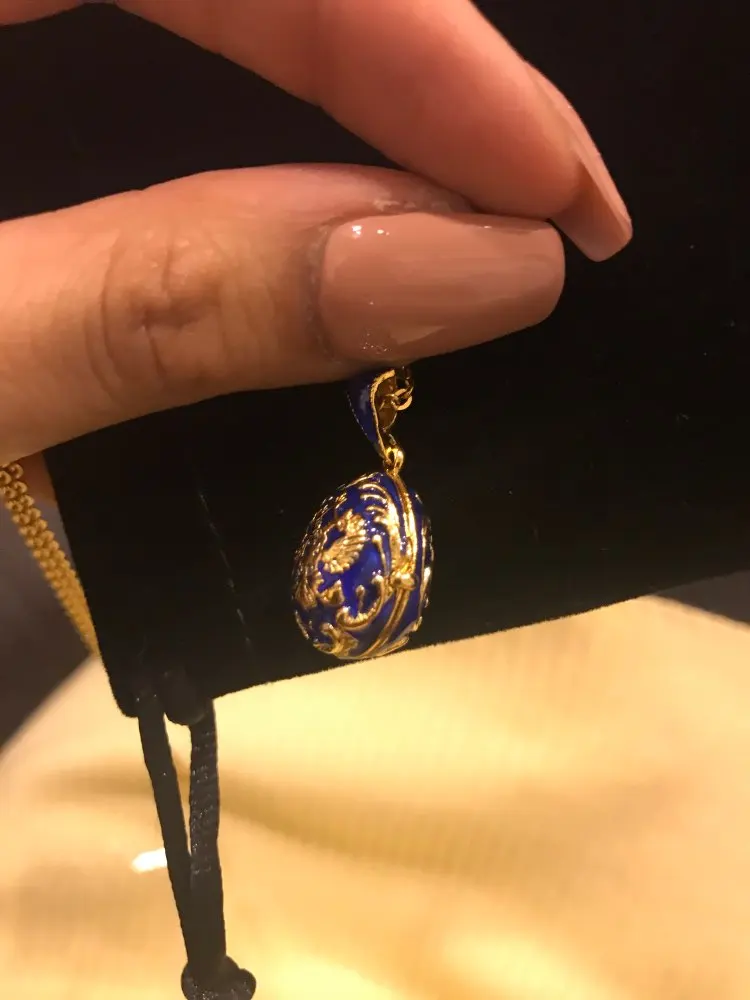 YAFFIL Women Brass Vintage Egg Pendant Eagle Design Enamel Handmade Jewelry Crystal Necklace Gift To Women Girls Ladybird Inside
