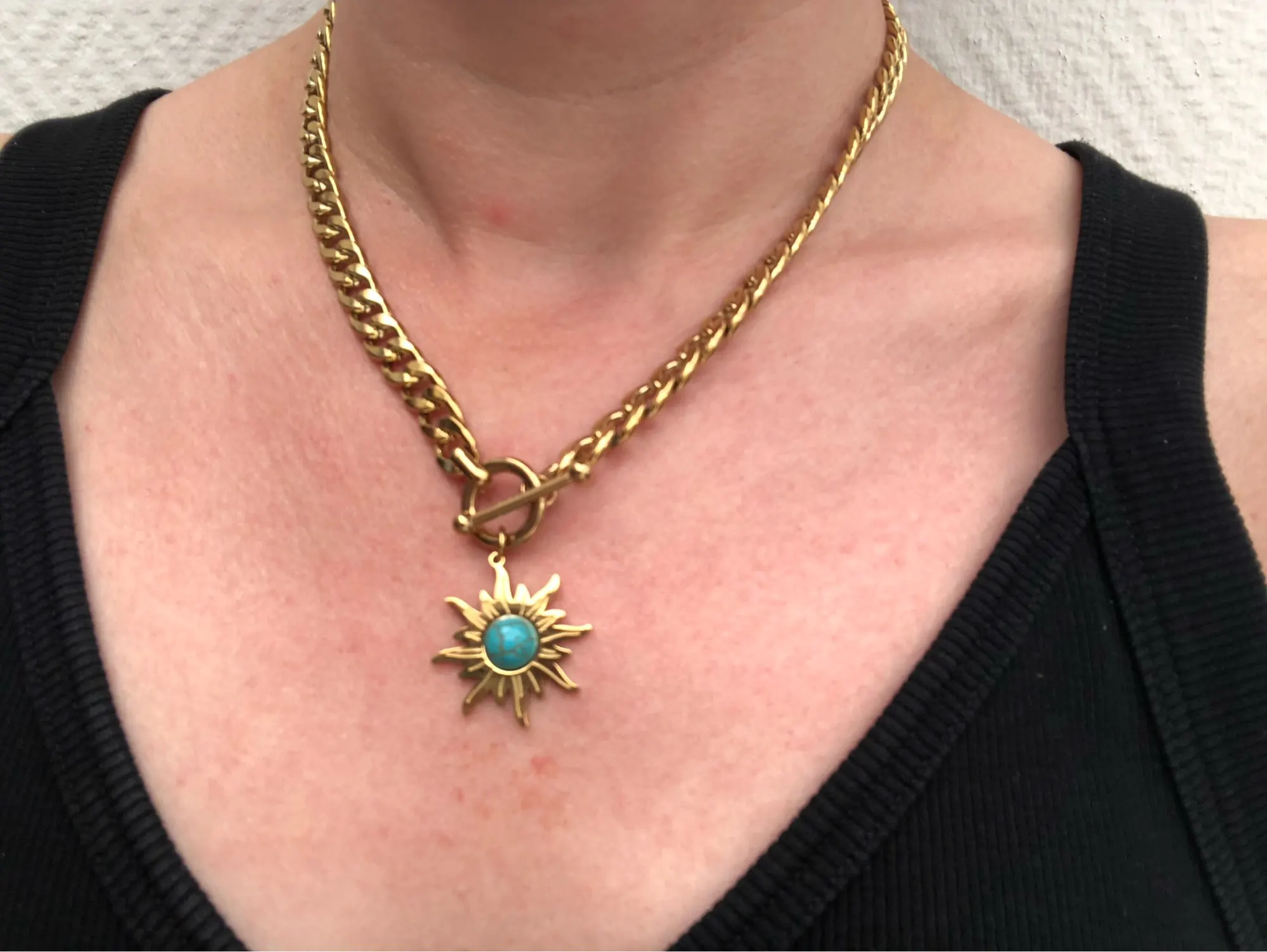 Yhpup Exquisite Sun Flower Pendant Necklace Stainless Steel Golden 18 K Chain Choker Women Necklace Bijoux Femme Accessories
