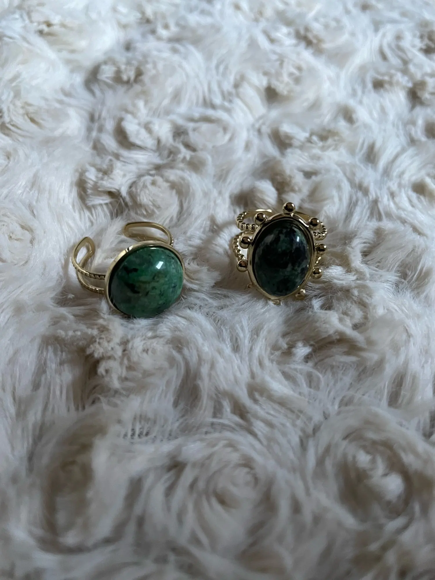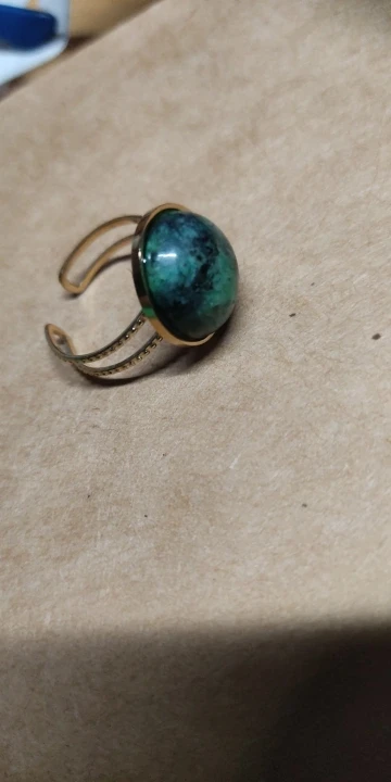 Yhpup Temperament Green Natural Stone Opening Rings for Women Stainless Steel Punk Jewelry Statement Metal Ring Anillos Mujer