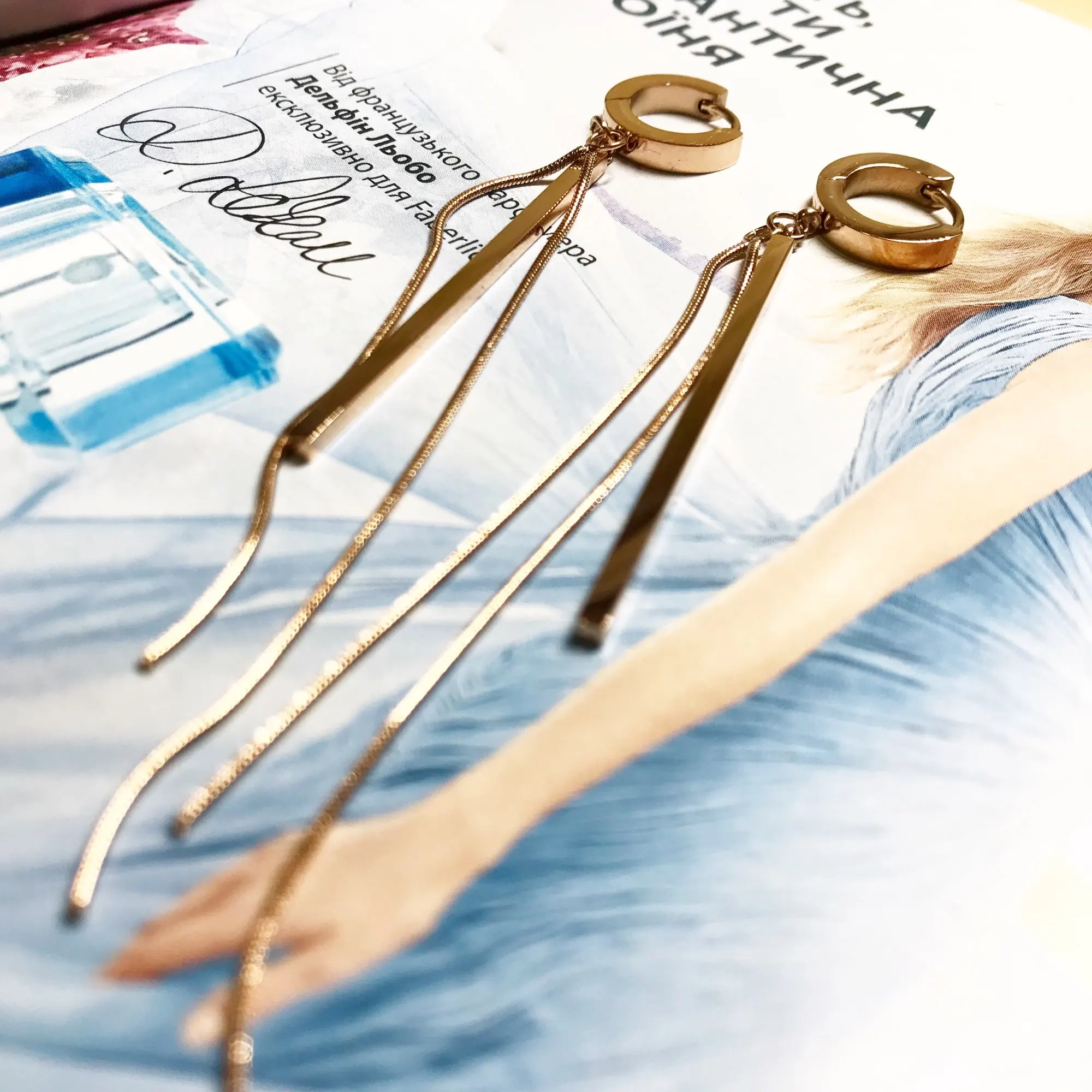 YiKLN Simple Rose Gold Long Strip & Chain Tassel Earrings For Women Girls Titanium Steel Bohemia Party Hoop Earrings YE19228