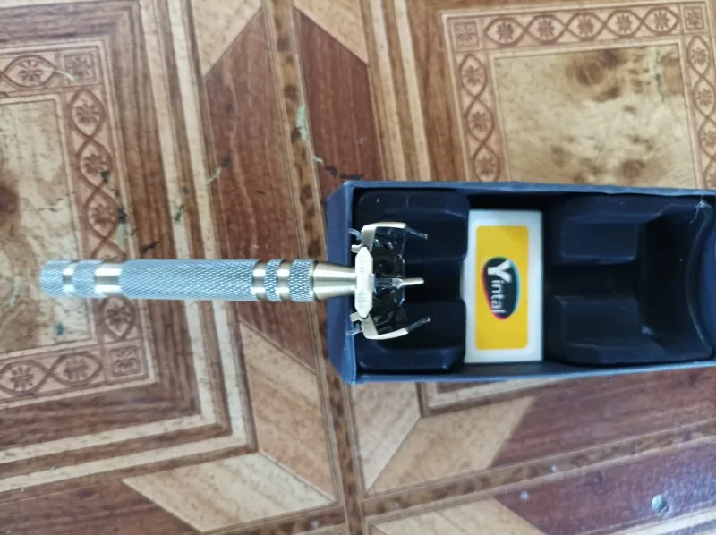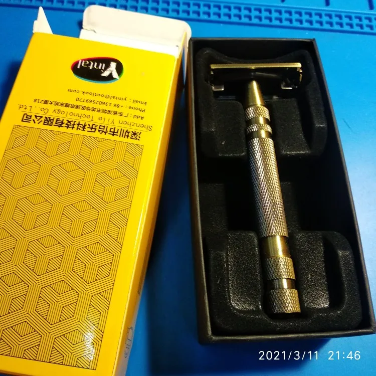 YINTAL New 100% Brass Men's Double-sided Manual Razor Long Non-slip Handle Butterfly Quick blade replacement