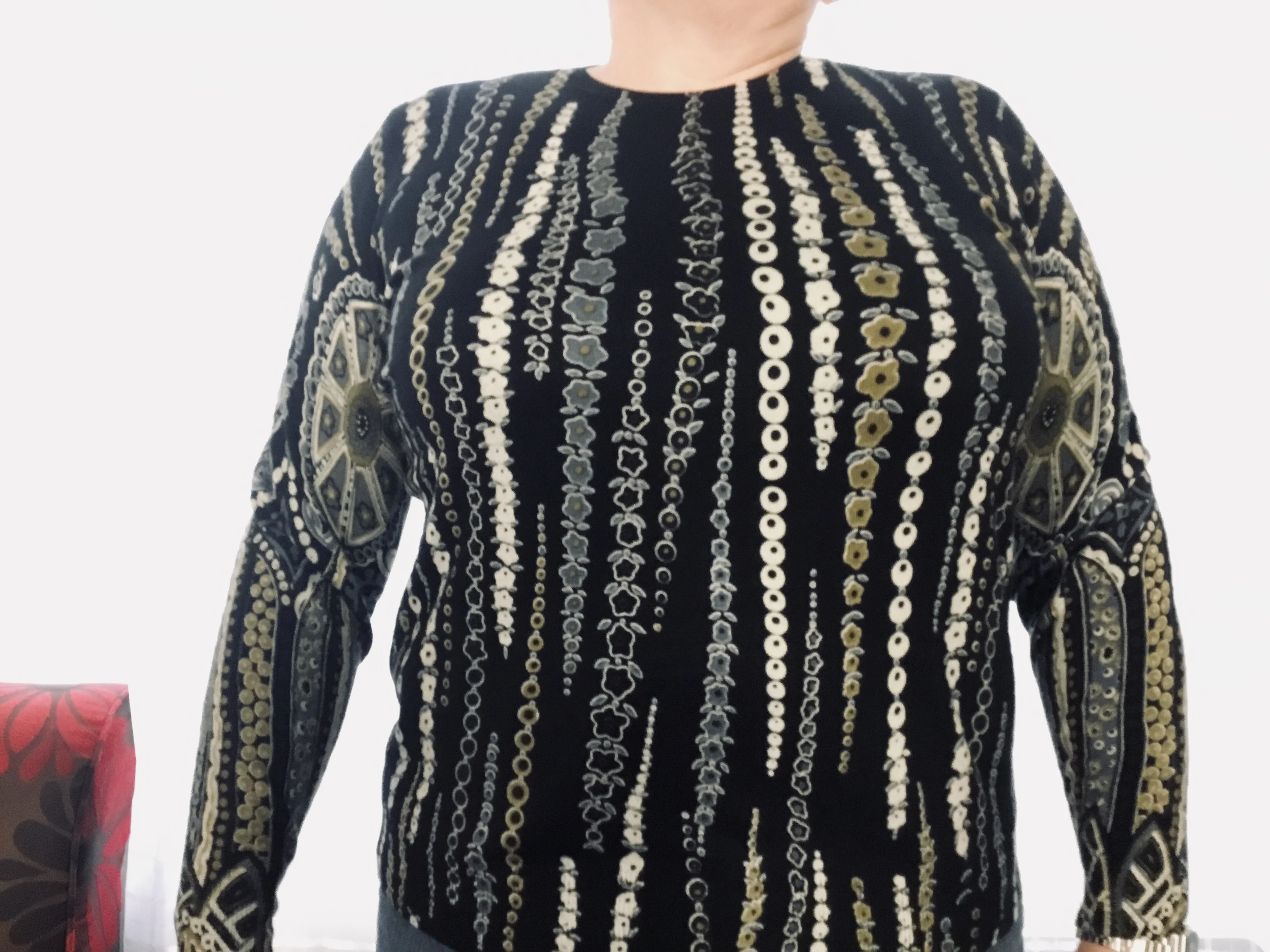 YISU Knitted Sweater Women Autumn Winter O-neck Long Sleeve Loose Pullover Jumper Tops Floral pattern Printed Sweaters Women