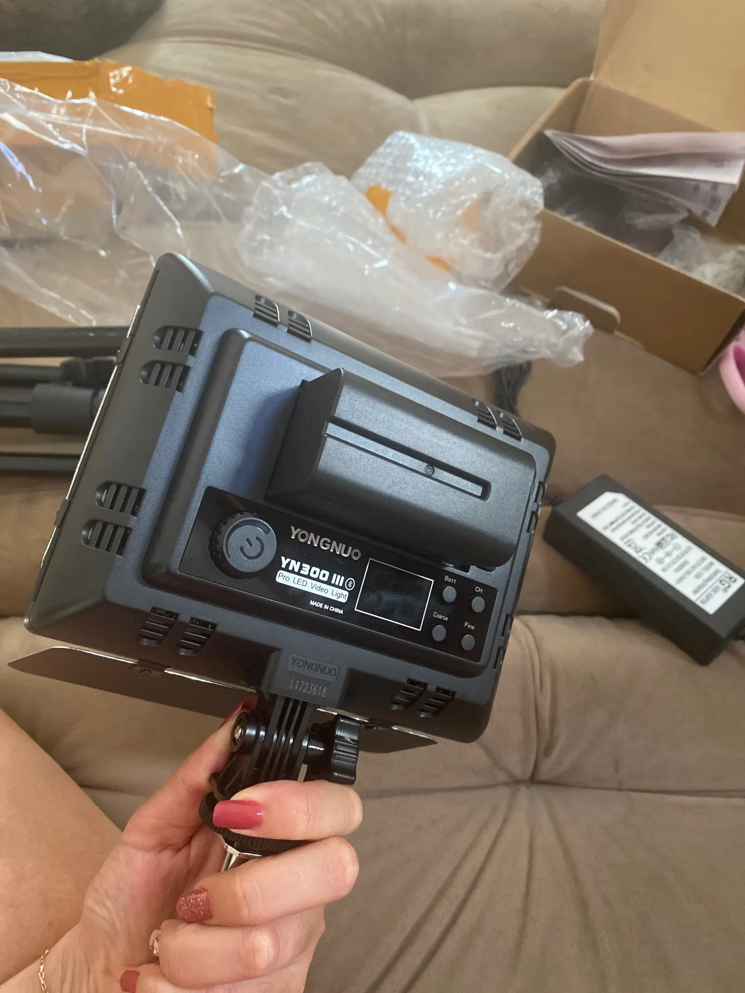 Fairly fast delivery. The tripod is very light (stability ???). The battery charger seems rather fragile, you have to force the European standard adapter on the original connector (reliability ??). The projector is as described and performs well in testing.