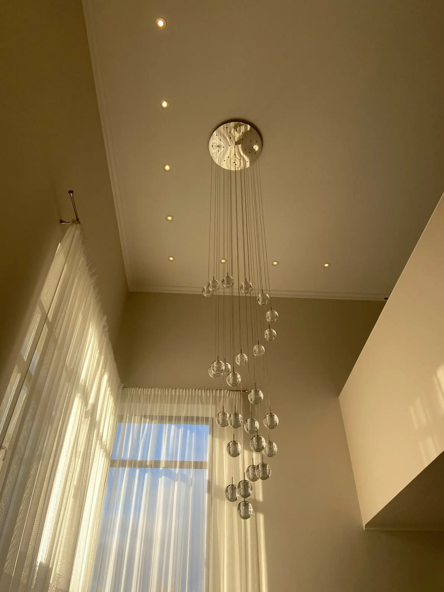 It really looks great in the staircase entry. It takes time and effort (2 person for 3 to 4 hours) to install it but looks gorgeous once up! I had problem with one of the cable and seller responded to my problem and send me the required parts very quickly! Happy with the purchase