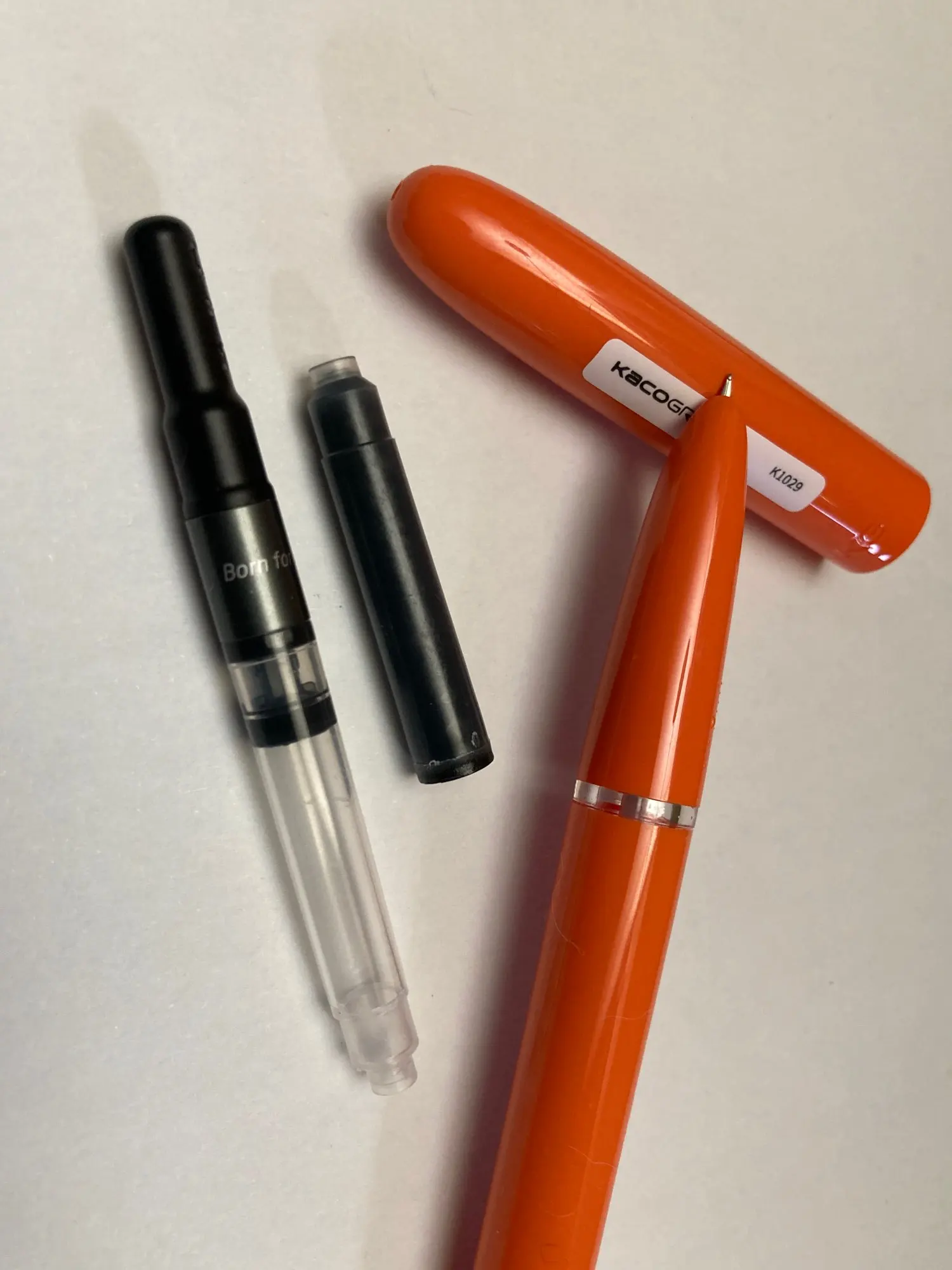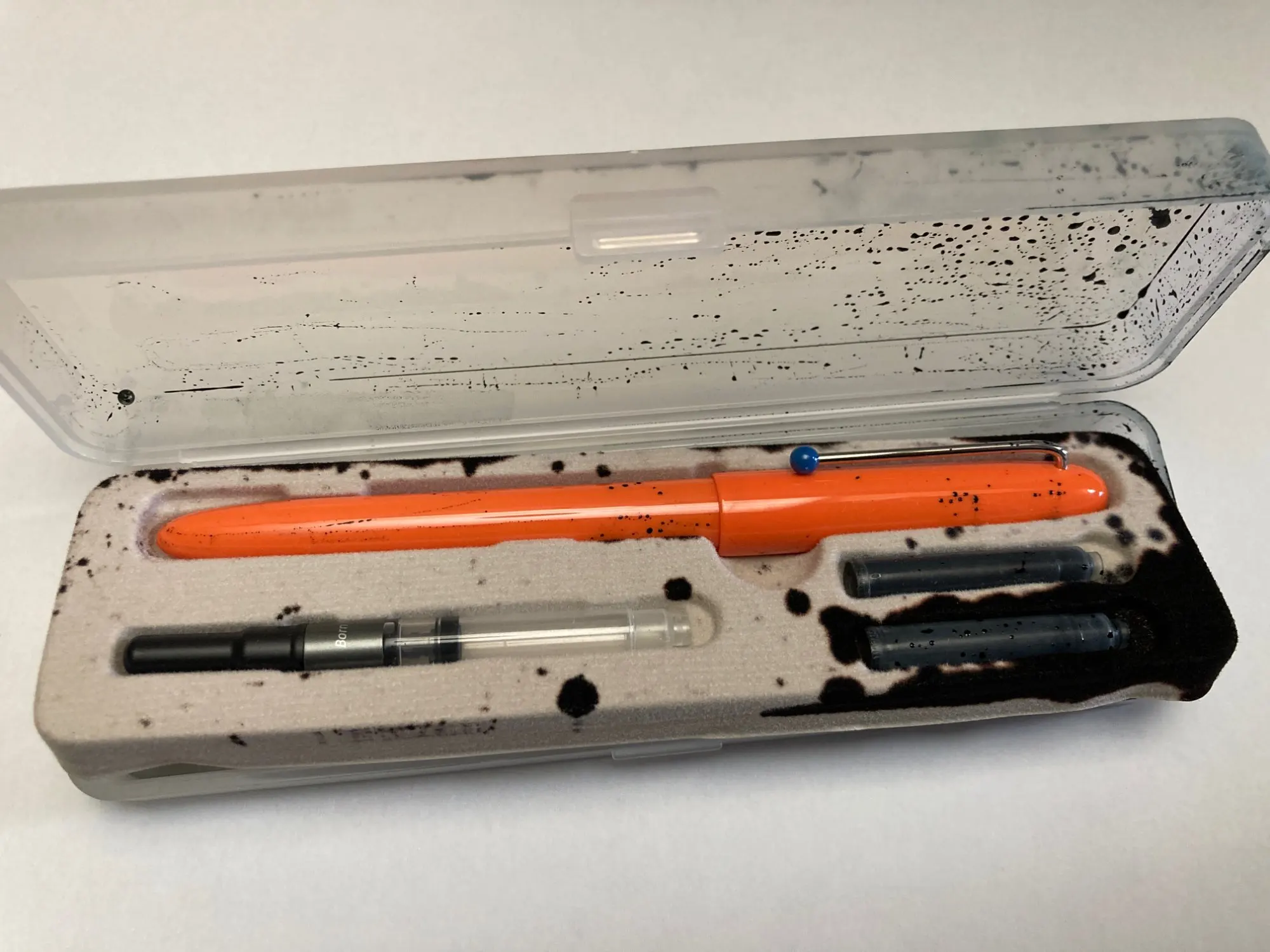 The pen is exactly as described, looks good (it is my second order). But it was badly packed and some parta came damaged - cartridges exploded and black ink was all over the box. I received partial refund.