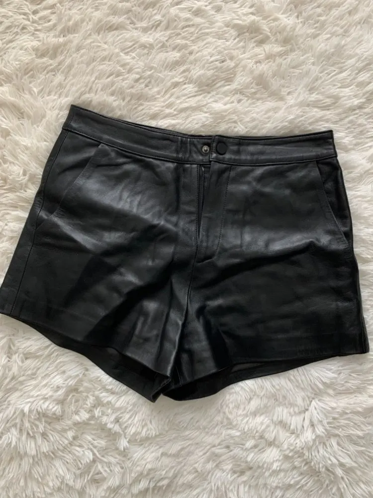 YR!Free shipping.2022 fashion soft sheepskin shorts.women hot genuine leather shorts.Brand new sales lady slim shorts.