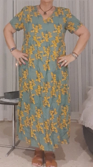 I love love love this dress, fabric is light and cool and will order another!