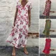 ZANZEA Women Sundress Bohemian Floral Print Beach Maxi Dress Vintage V Neck Short Sleeve Oversized Dresses Femme Kaftan Vestido7