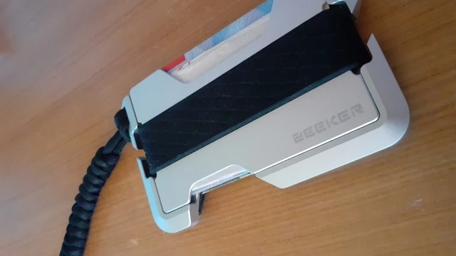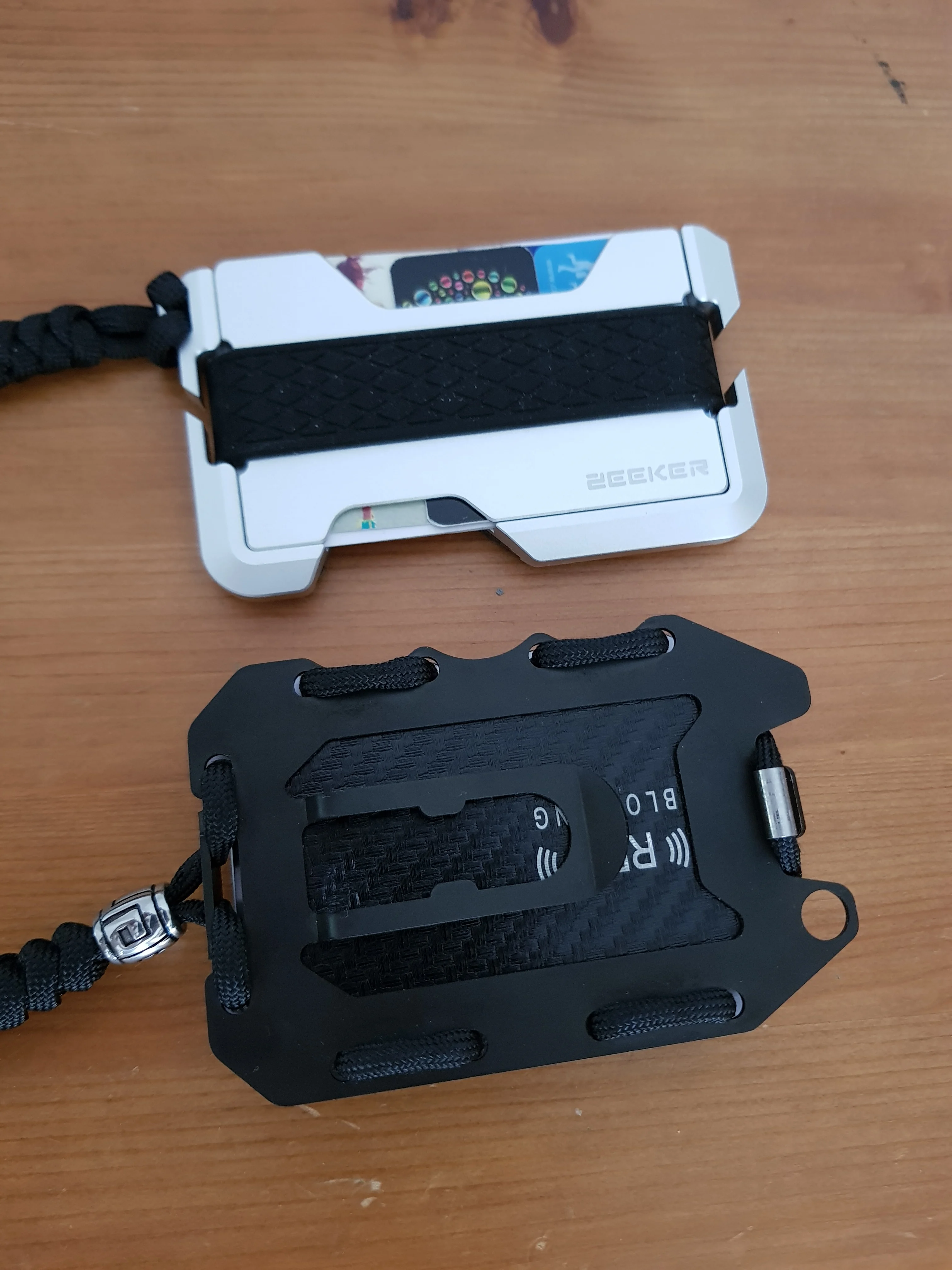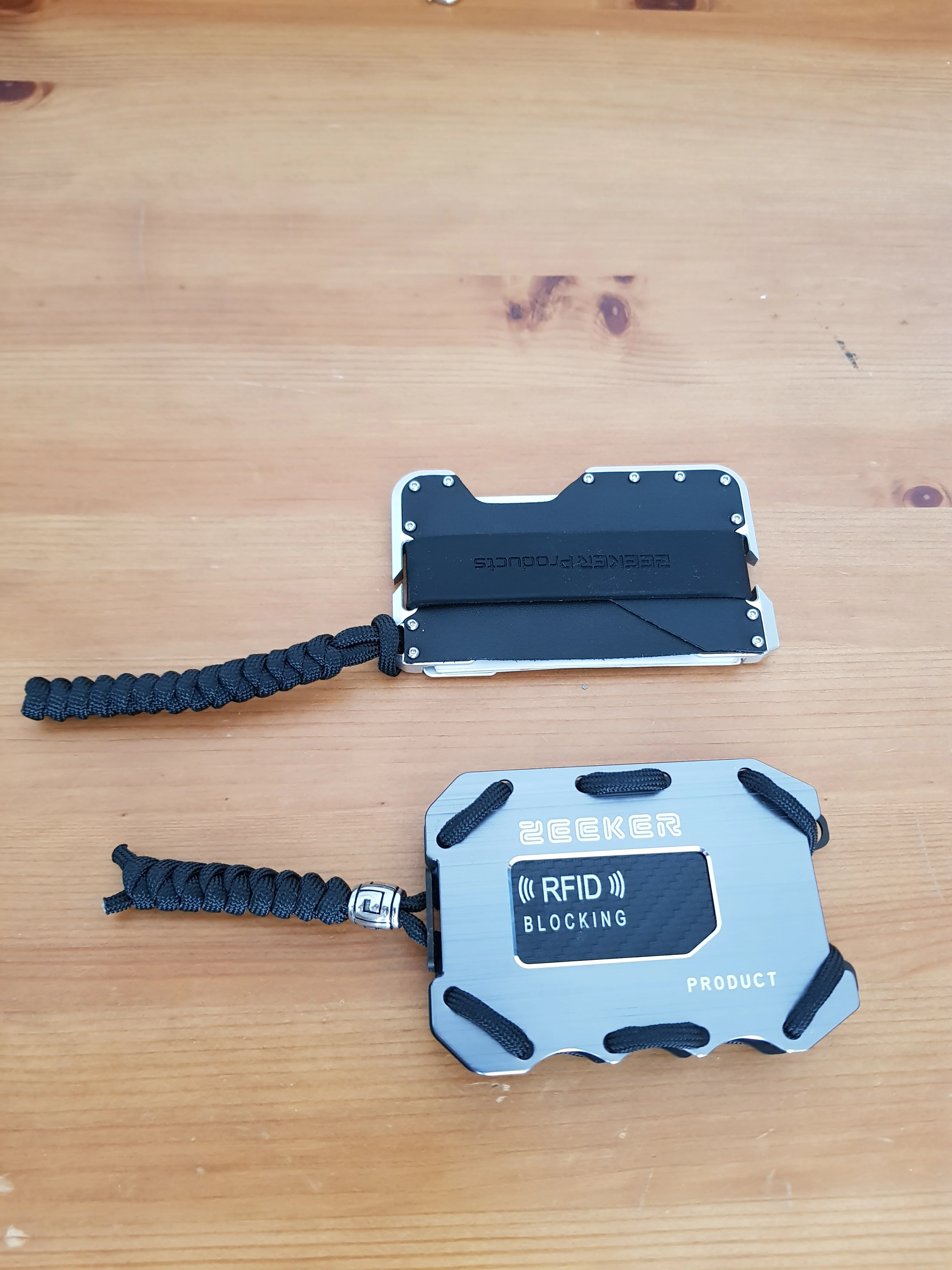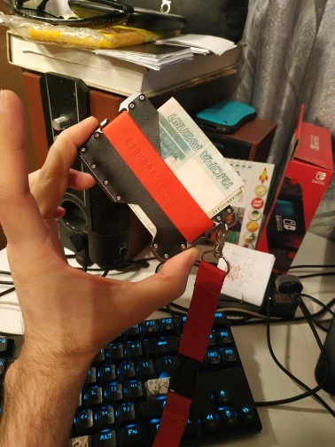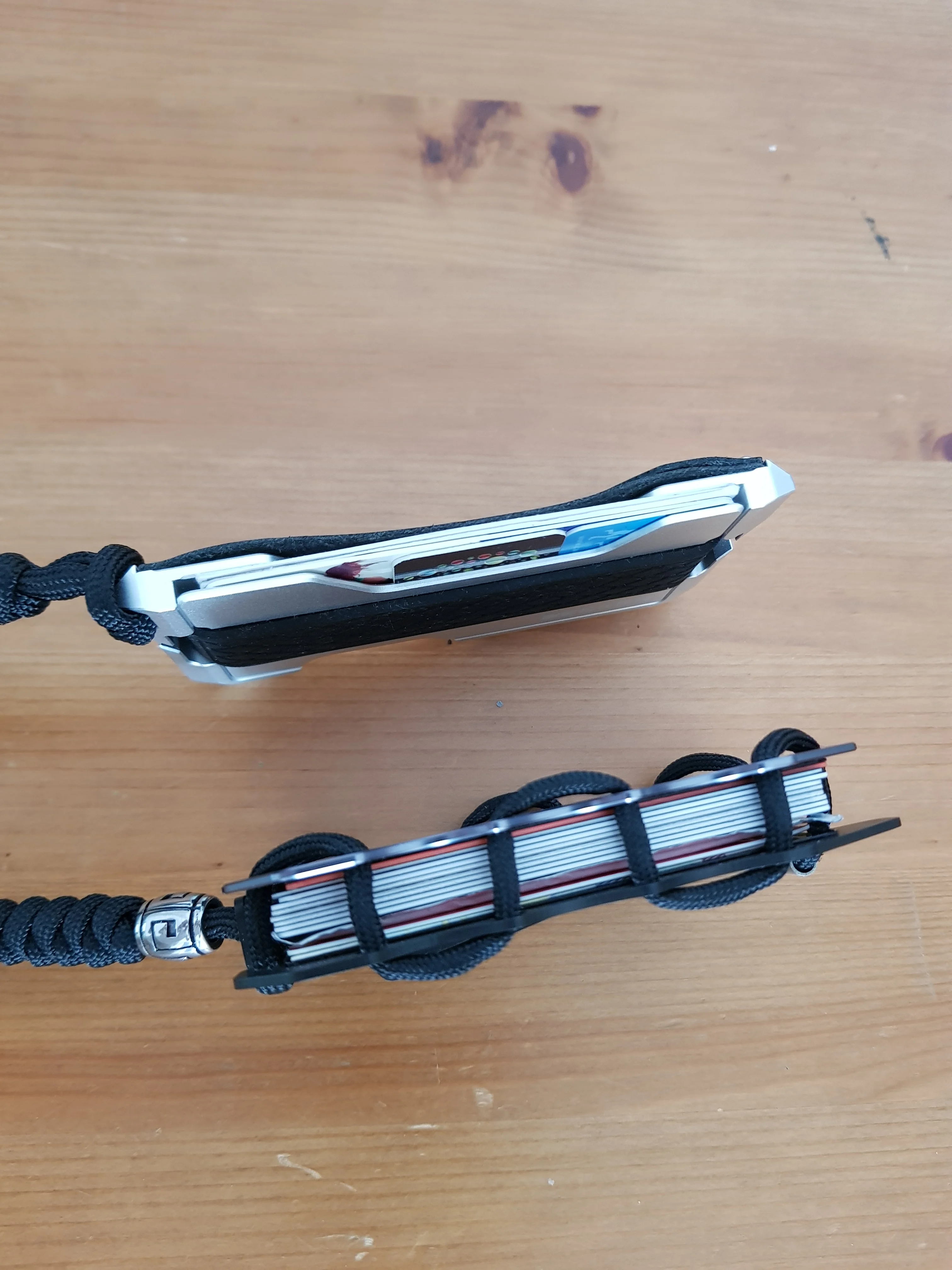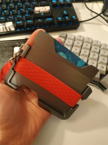 Very nice product. Item came nicely packaged, like it came from a higher end store. Came with an extra band and a paracord keychain. Out of the box, the leather is quite firm. You'll want to stretch it a little for the cards to come out of the leather part easily. This can be accomplished by putting two cards in the slot and letting it sit for a few hours. Afterwards, it's very easy to remove cards. Would definitely buy again.