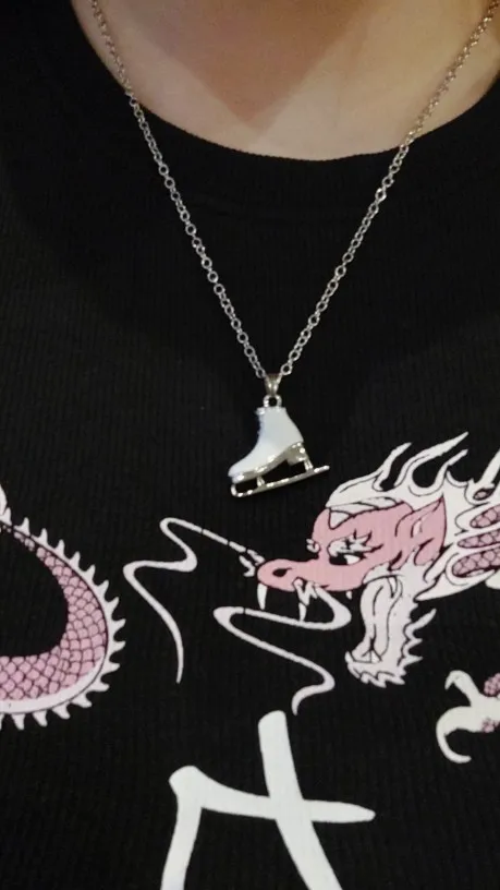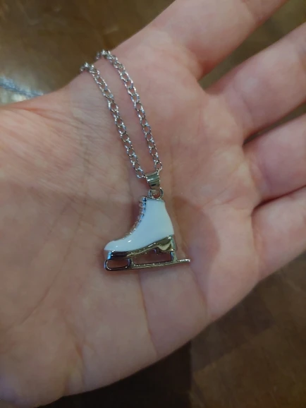 This is really sweet. Classic white figure skate on one side, sparkling pink on the other. Delivery was fast!