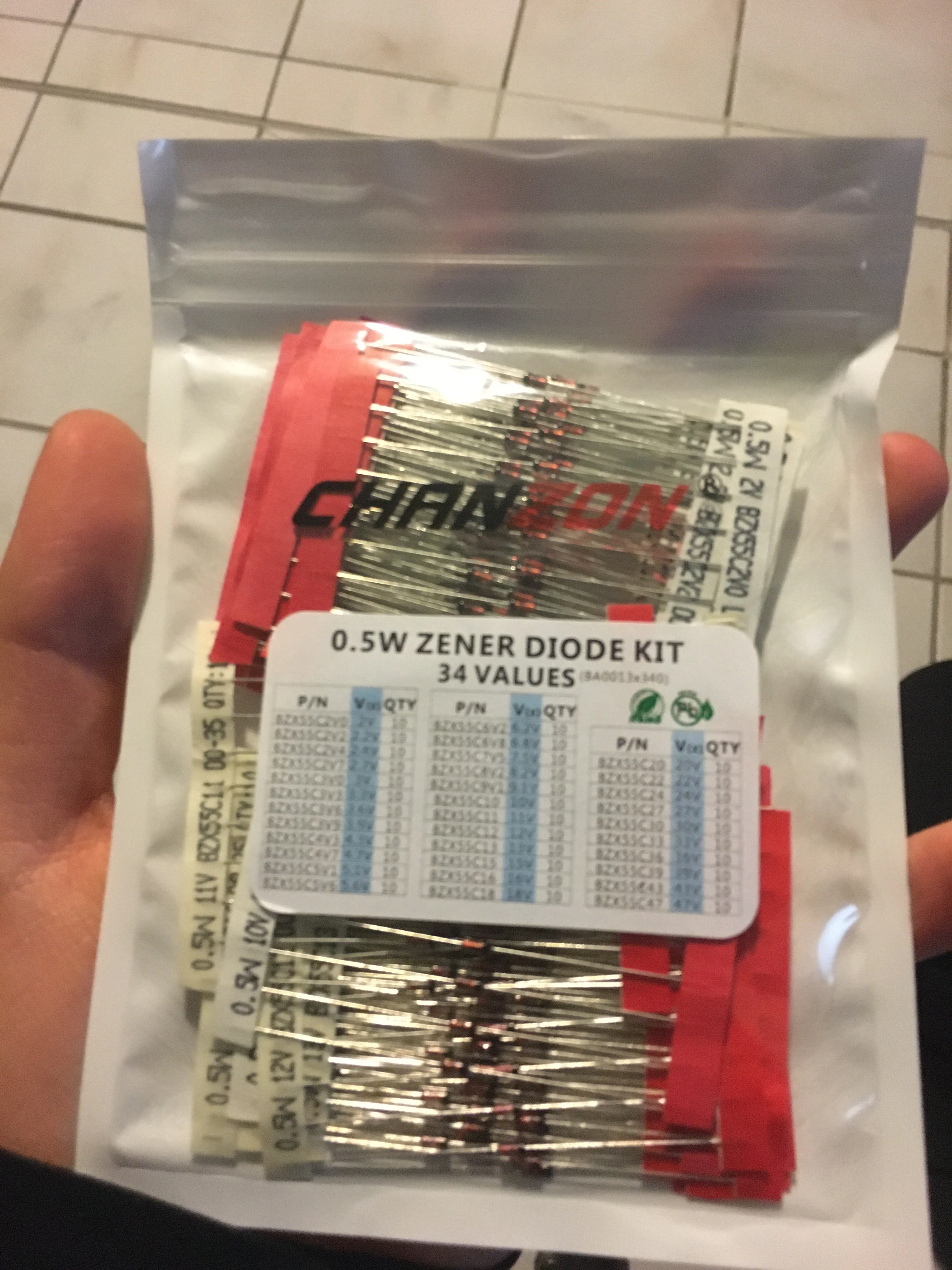 0,5 W de diodos Zener set de diodos surtidos 2V 3V 3,3 V 3,6 V 5,1 V 5,6 V 7,5 V 10V 12V 13V 15V 16V 18V 20V 22V 24V 30V 36V 39 V, 47V