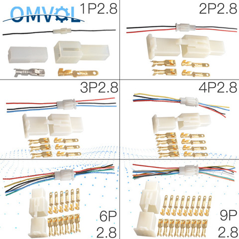 1 2,8mm conector 1P/2P/3P/4P6P/9P 9P 2pin eléctrica 2,8 Kits de conectores hembra enchufe para moto de la motocicleta del coche