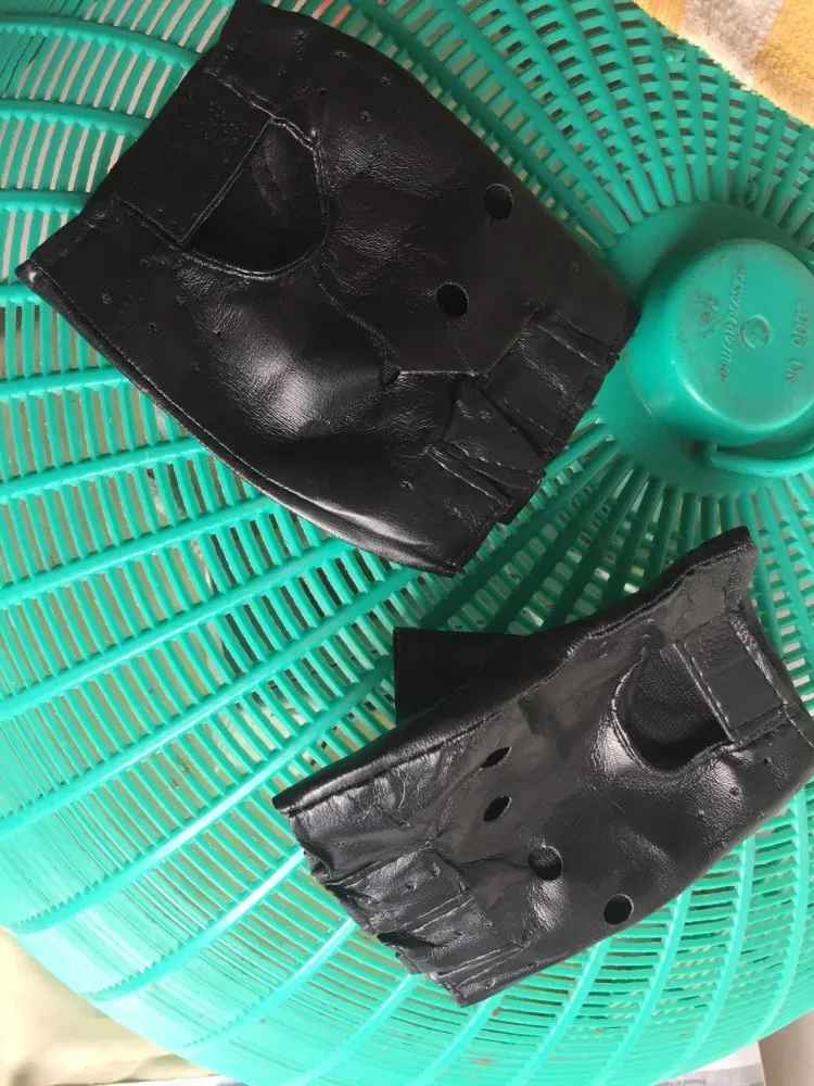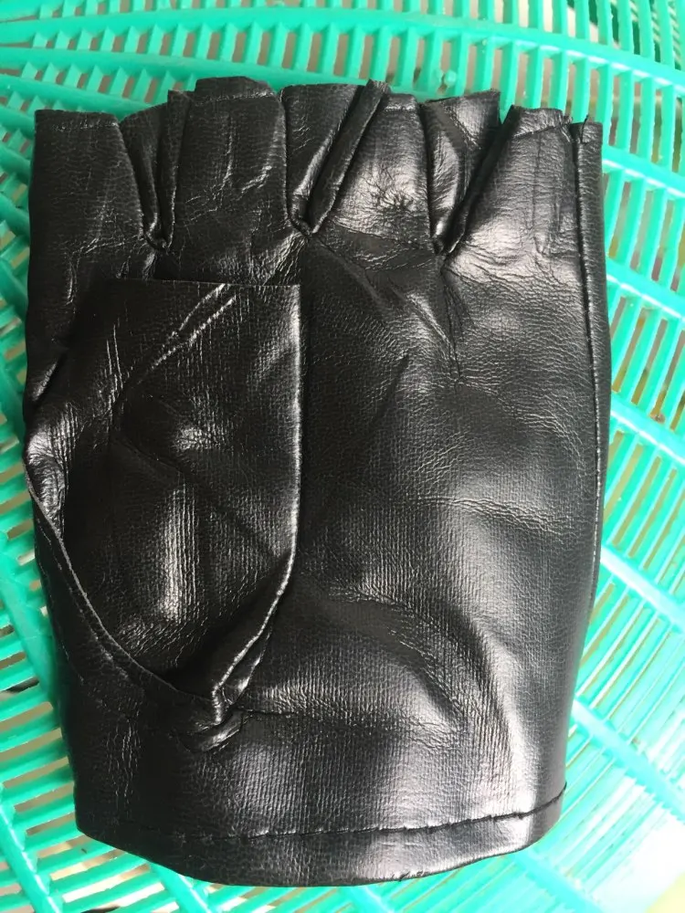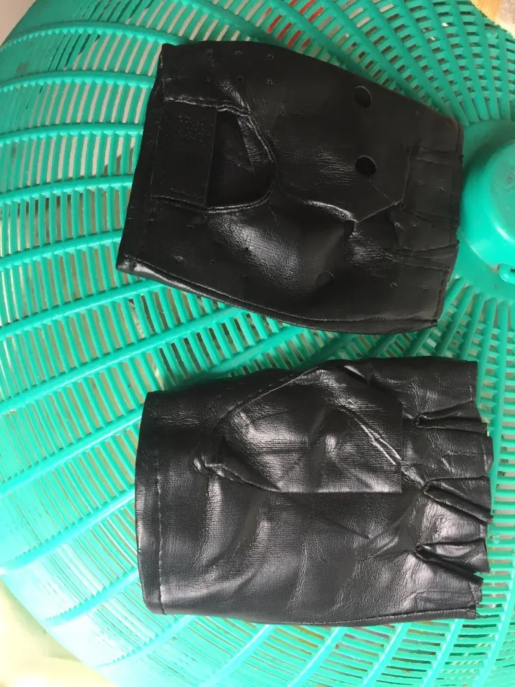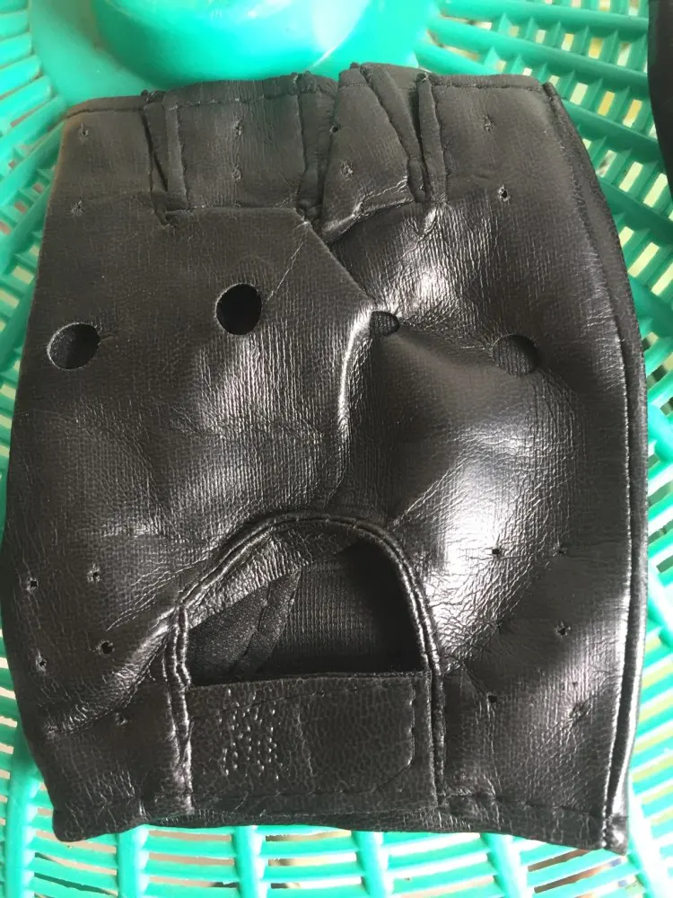 1 par de Guantes para muchacho genial hueco PU Biker de cuero Guantes de conducción para los hombres negro medio dedo Guantes sin dedos Guantes de Guantes