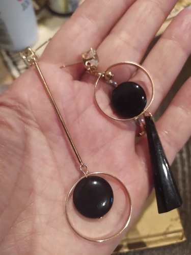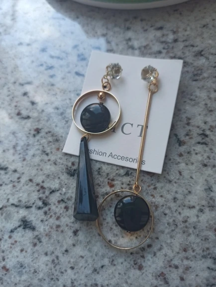 1 par especial mujeres asimetría pendientes largos con diamante de imitación negro acrílico colgante gota pendientes joyería buen regalo