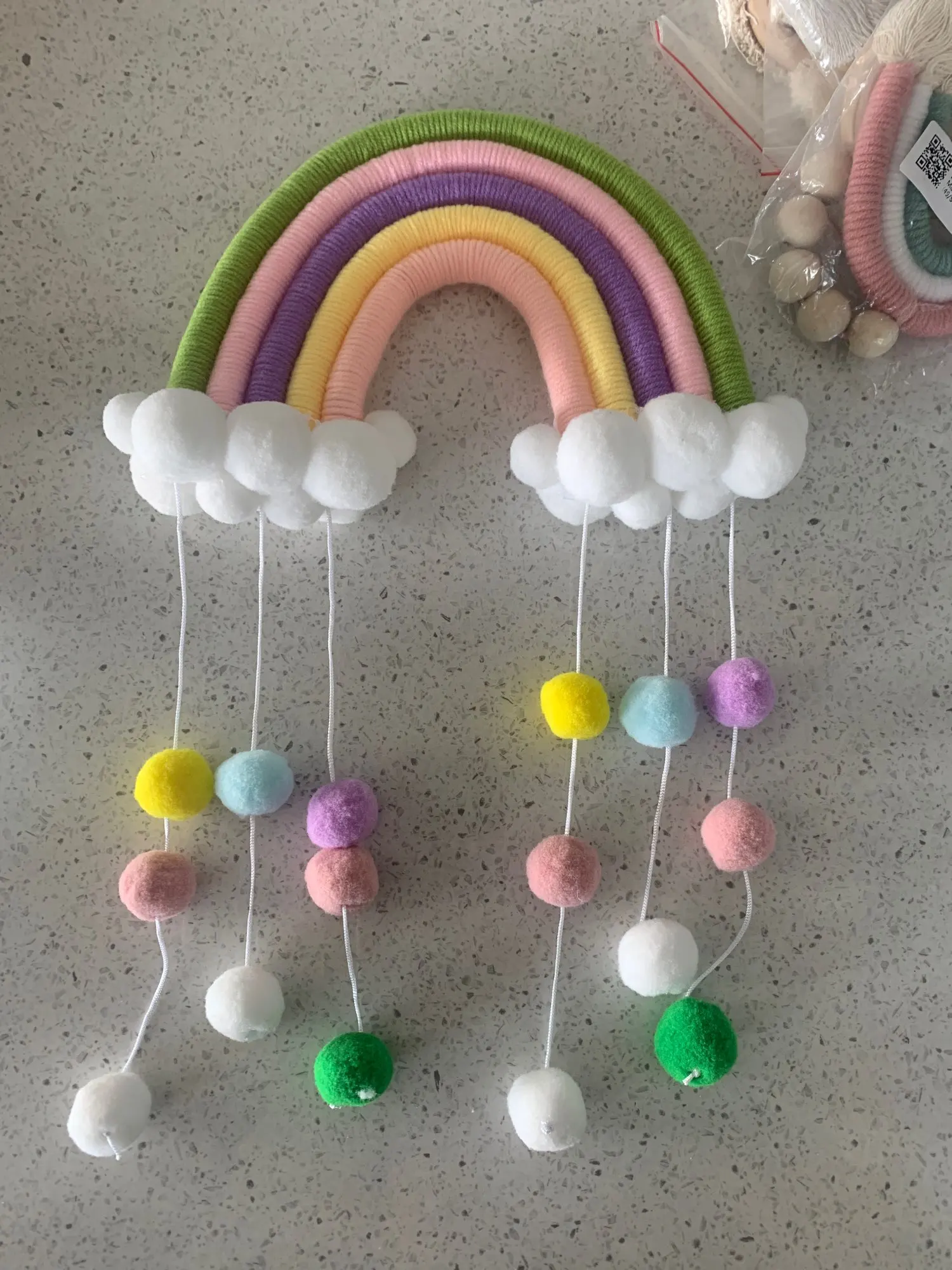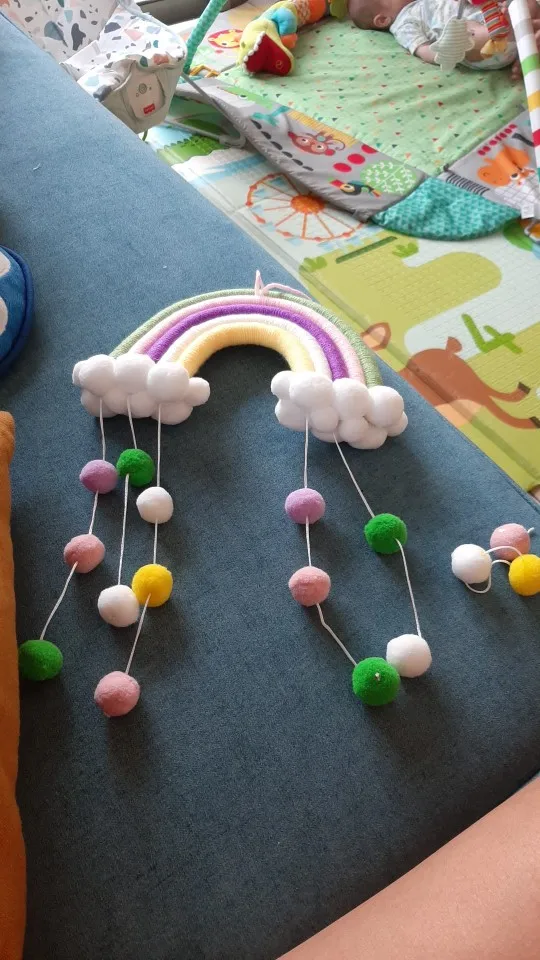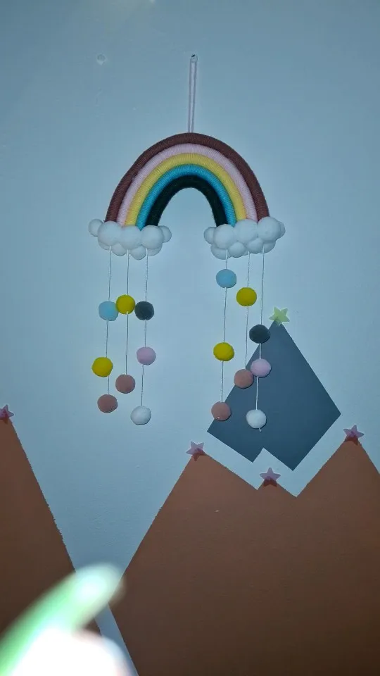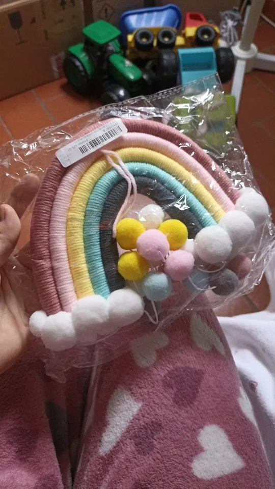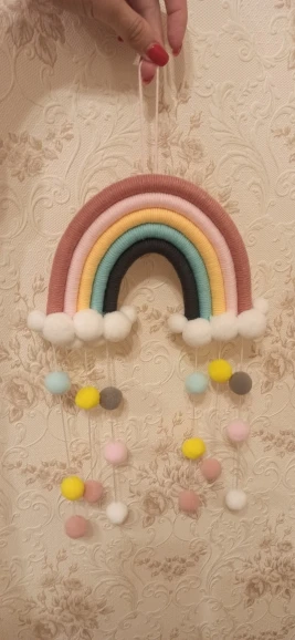 1 ud. Bonito tapiz de nubes de arcoíris Bola de fieltro macramé decoración colgante de pared hecho a mano accesorio de foto habitación decoración artesanías