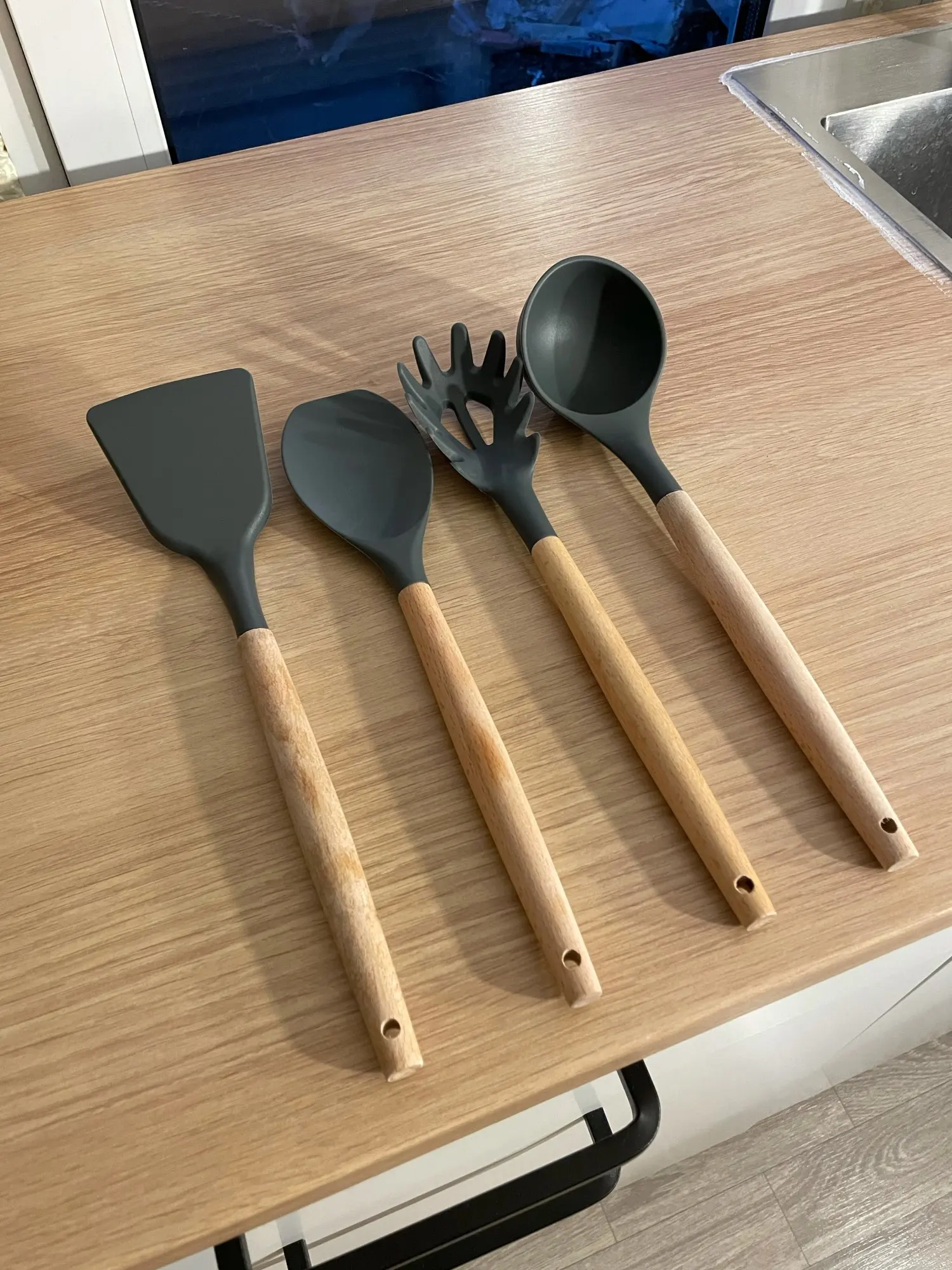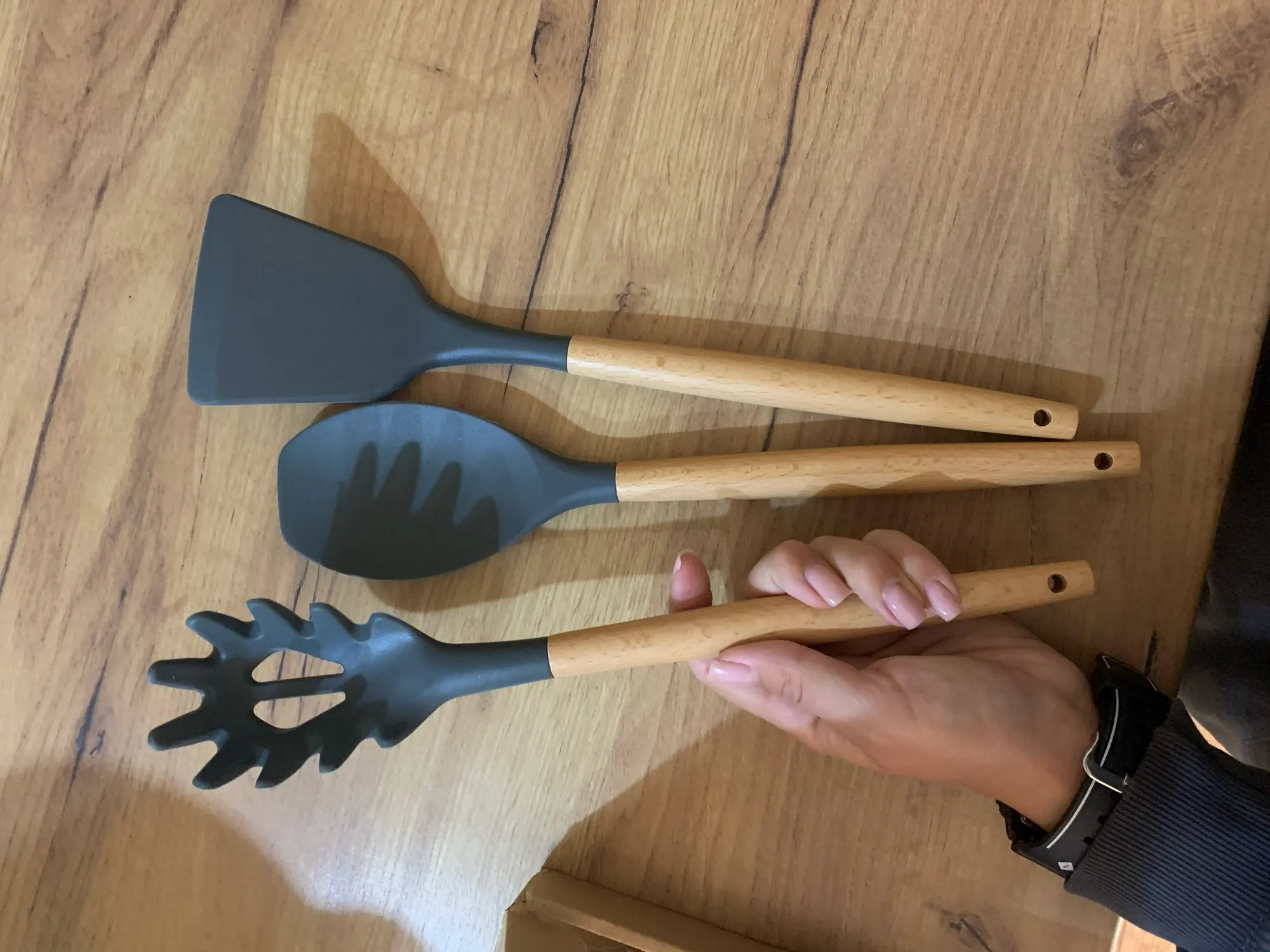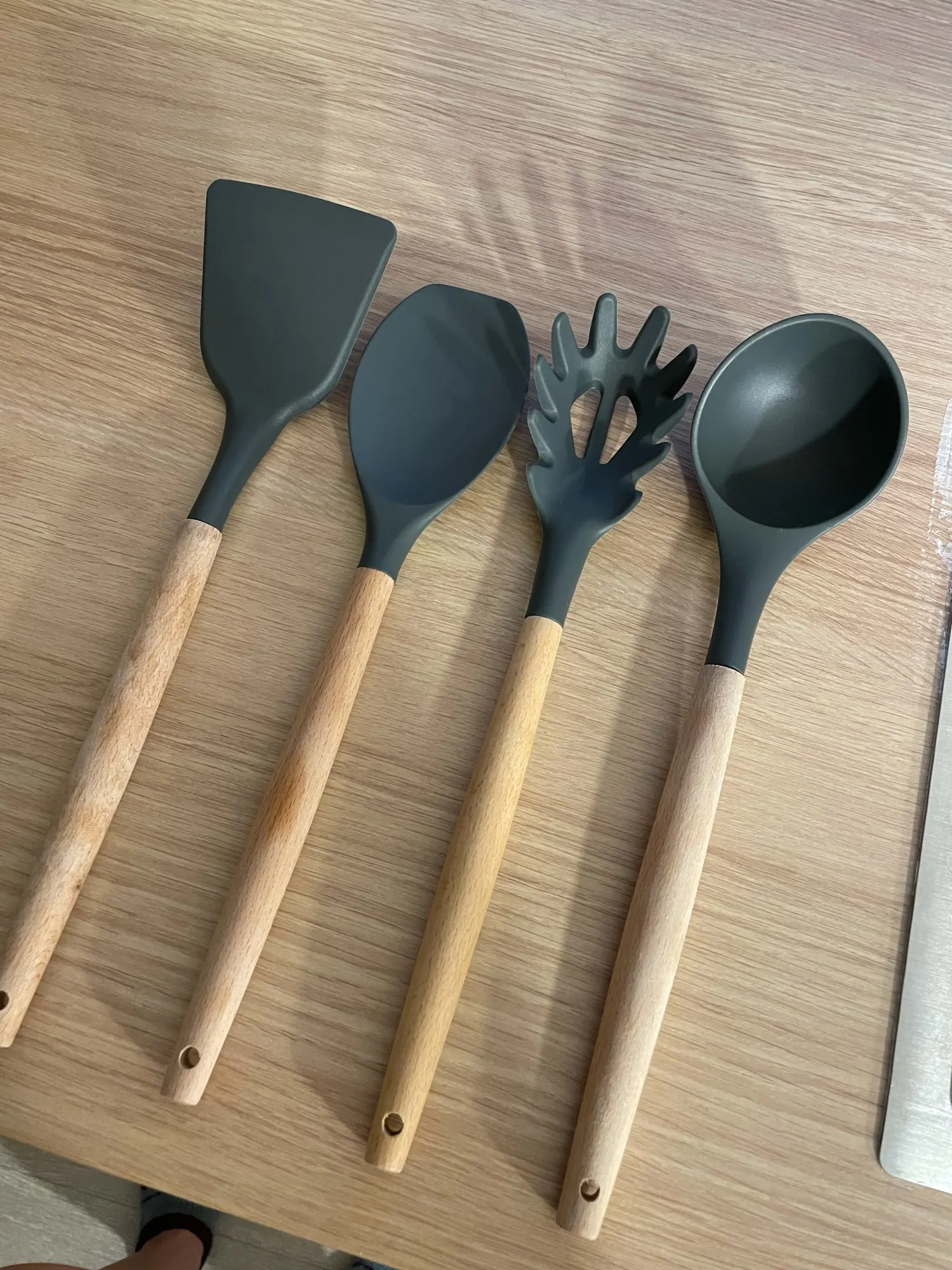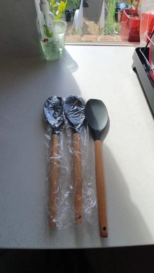 1 unids/set de silicona utensilios de cocina conjunto de accesorios de cocina herramienta cuchara huevo palas pala de cocina no-Palo de mango de madera espátula