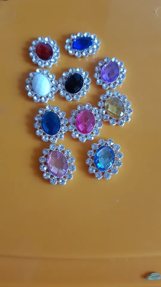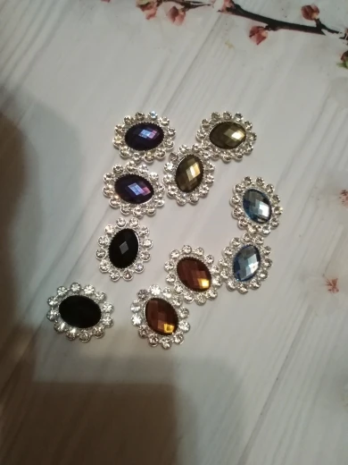 10 diamantes de imitación acrílicos ovalados de 19x24mm, botones de aleación de Metal para decorar ropa, bricolaje, Centro de flores para el cabello, colección de recortes