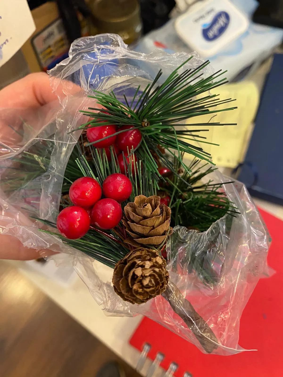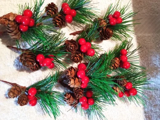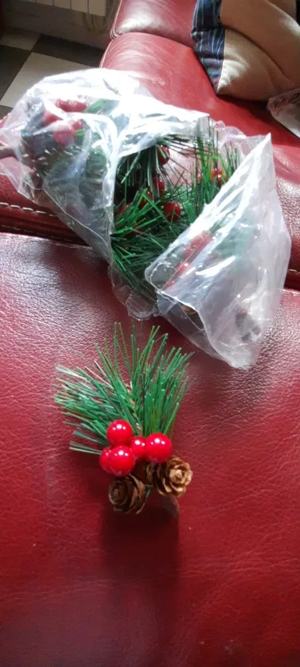 10 Uds. De flores artificiales de árbol de Navidad, baya roja y cono de pino con ramas de acebo para vacaciones, decoración Floral, artesanías