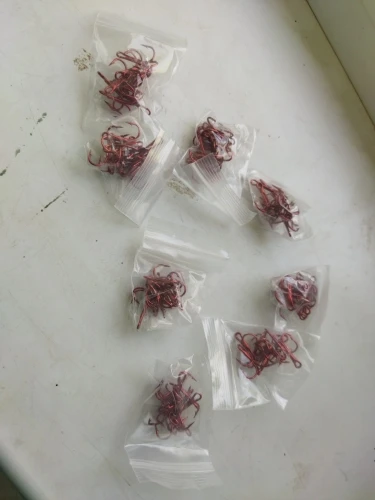 10 unids/lote de anzuelos de pesca rojos de acero al carbono, triples, triples, anzuelos de pesca de curva redonda 2 #4 #6 #8 #10 # aparejos de pesca