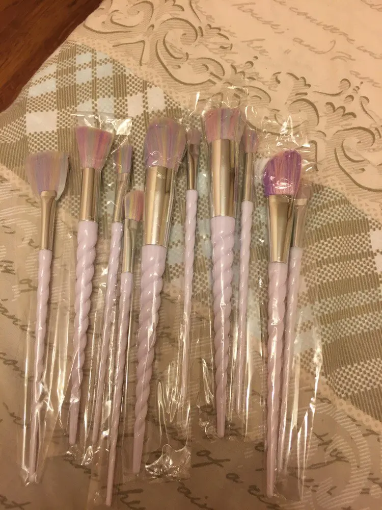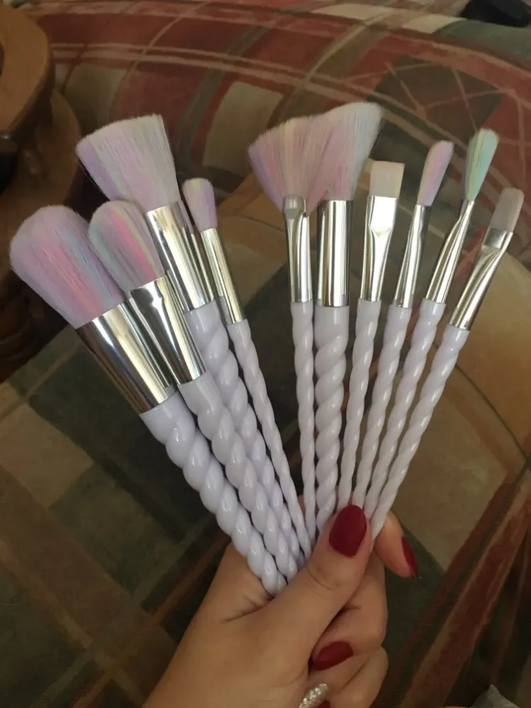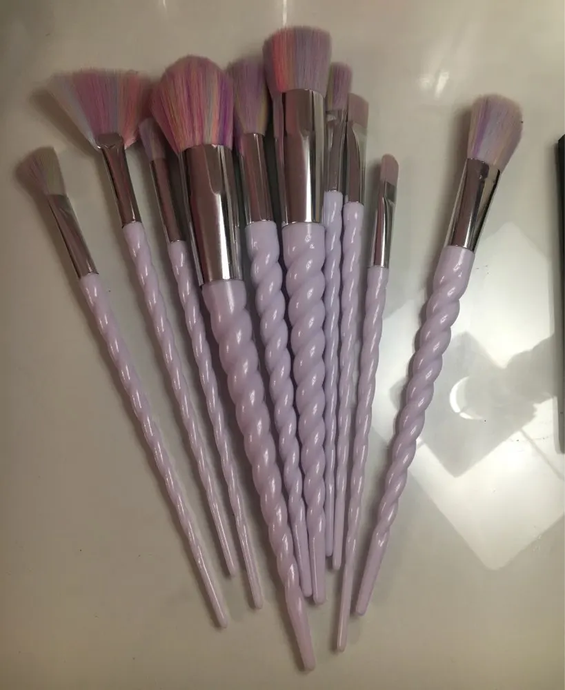 10 unids piezas Juego de brochas de maquillaje profesional unicornio Arco Iris diamante cara y ojo en polvo base de cejas Kit de brochas de maquillaje BBP