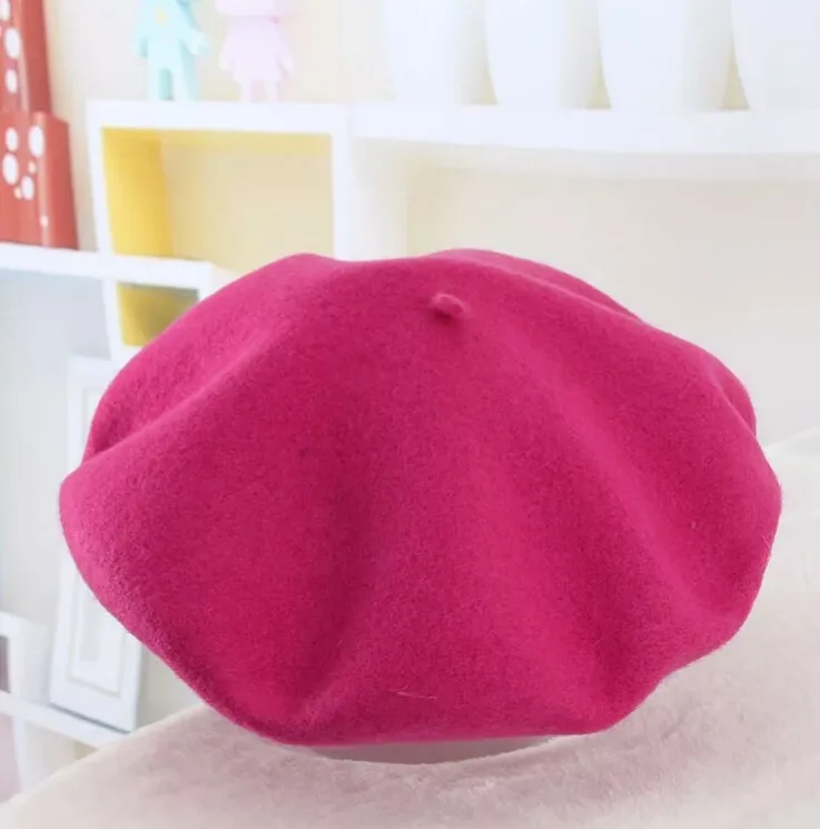 100% lana boina de pintor de horno de trigo pastel caliente chica alta calidad mujeres boina caliente mujer gorros sombreros de Color sólido de invierno