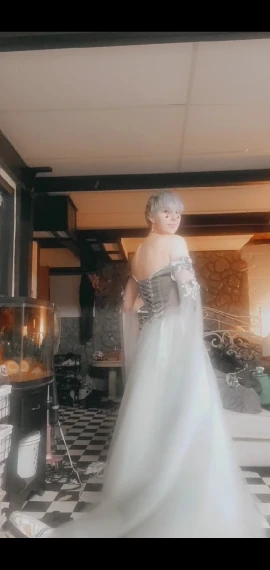 El vestido es como la foto. Absolutamente precioso. Mi talla está entre la S y la M y el vendedor me recomendó comprar la M pero también me pidio mis medidas para poder ajustarlo y simplemente queda perfecto! Esta perfectamente acabado, tiene varias capas de tela para darle volumen pero creo que con una enagua, lo armaría un poco más. Super contenta con el artículo y con el vendedor. Recomendable 100%