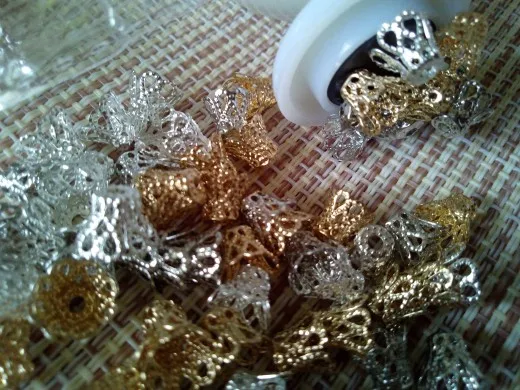 100 Uds accesorios de joyería, cuentas tapas media copa de vino de plata/oro/aburrido Chapado en plata para collar DIY pulsera