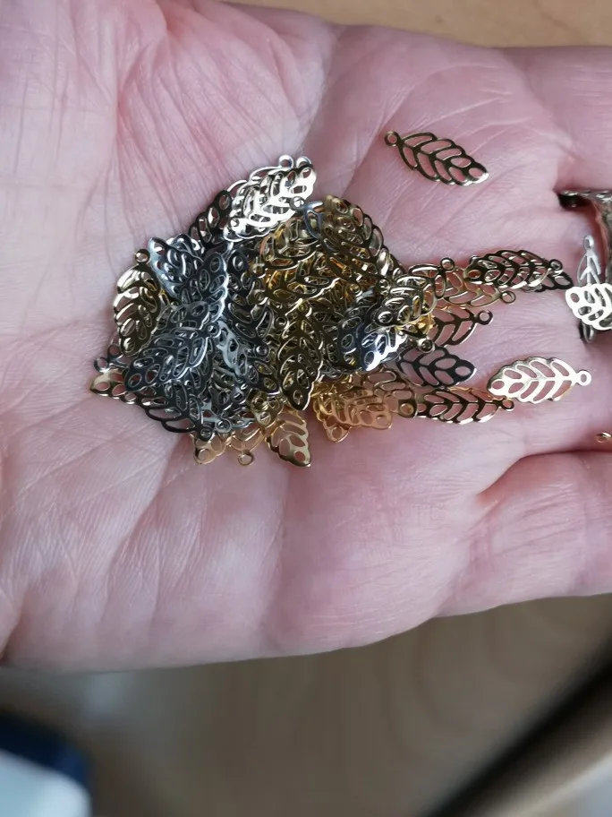 100 unids/lote de colgantes de hoja de oro de acero inoxidable, colgante de hojas, manualidades DIY, joyería, accesorios de artesanía, suministros