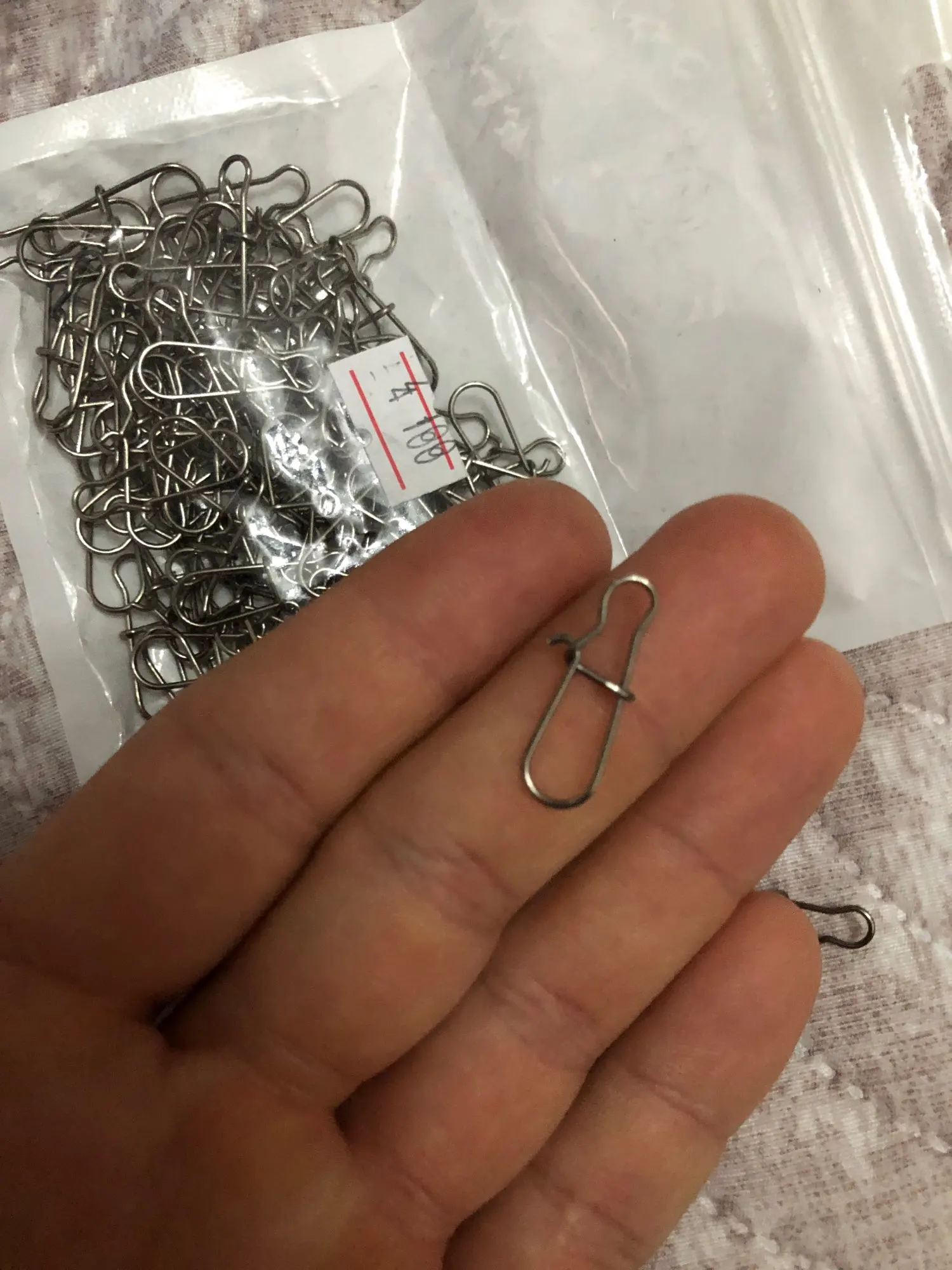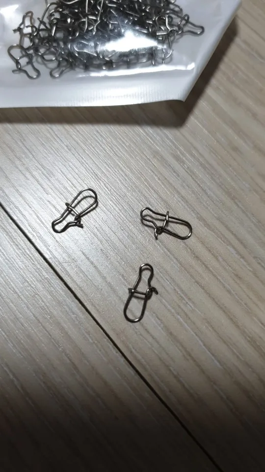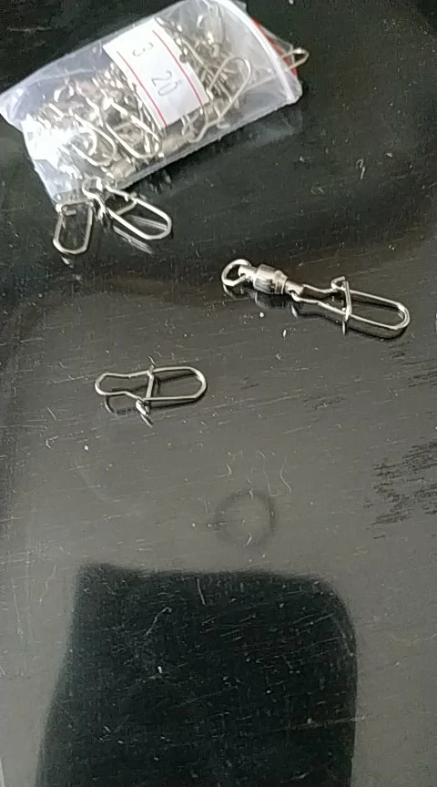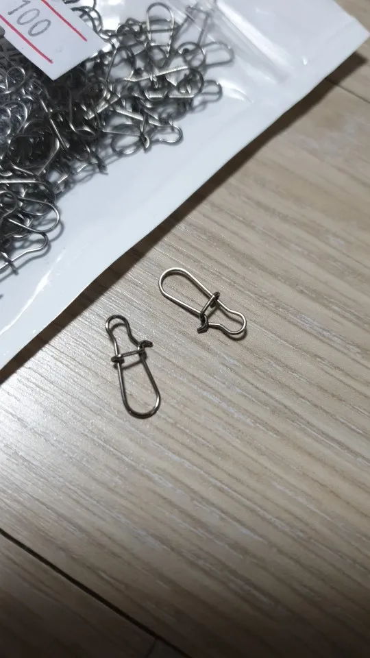 100 unids/lote de gancho de acero inoxidable de bloqueo de Snap giratorio de anillos de seguridad fotos conector ganchos pesca Pesca herramienta