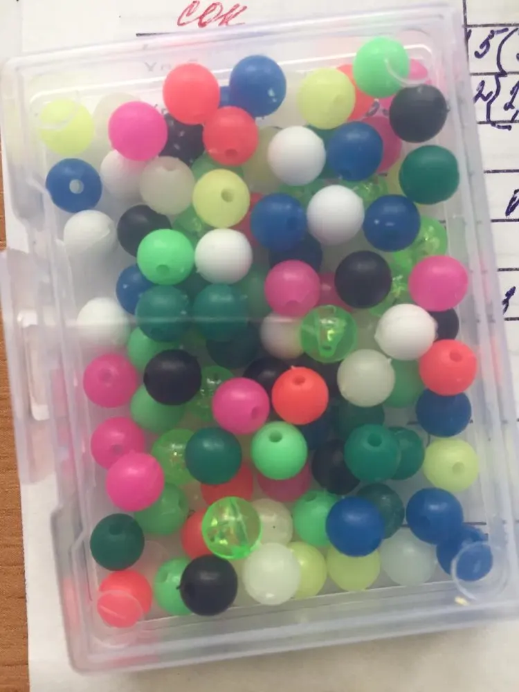 100 unids/lote luminosa cuentas espacio granos 6mm 8mm ronda carpa flotar bolas de aparejos de pesca de mar con caja
