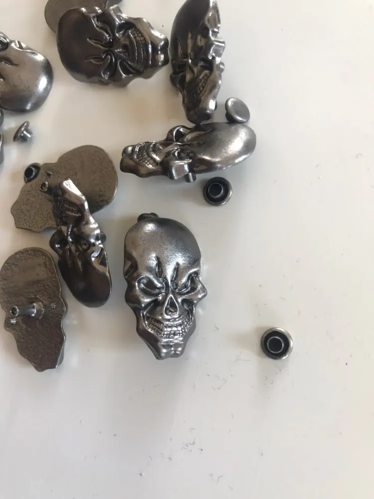 10X plata antigua pesada antiguo Punk Rock de la motocicleta cráneo esqueleto boutique accesorios de Hardware CONCHOS Rivetback