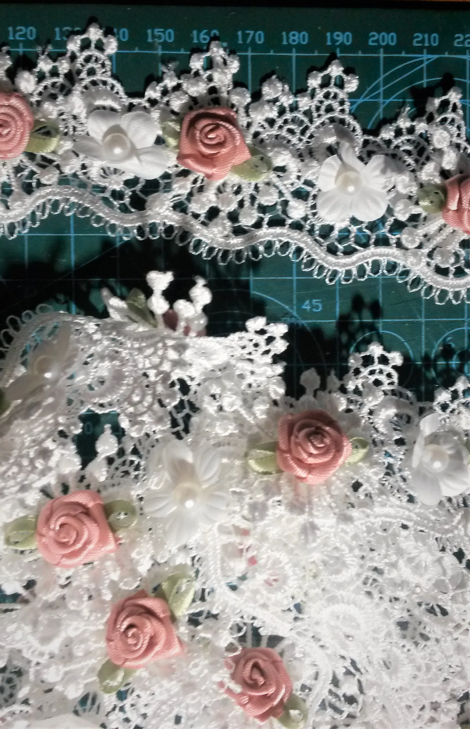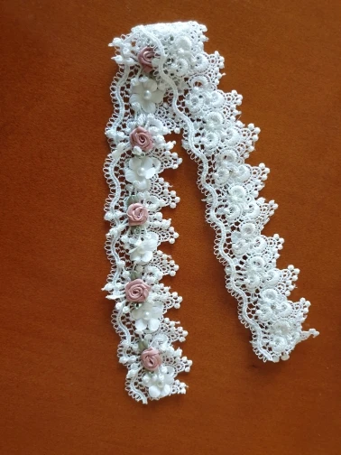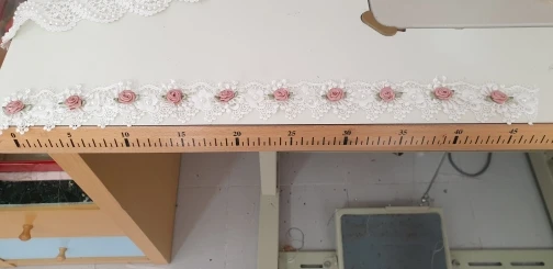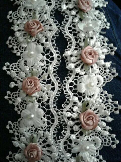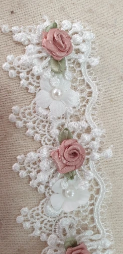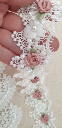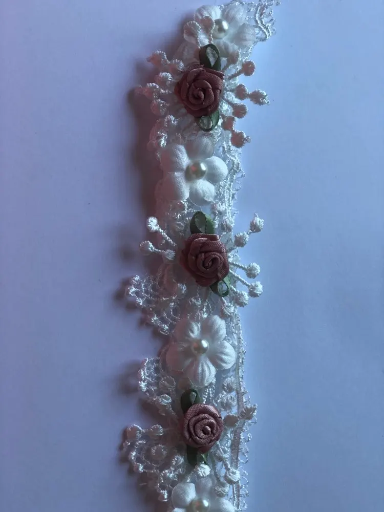 10X Soluble Perla Rosa Flor del bordado ribete de encaje de malla tela de cinta costura artesanal para traje vestido de boda decoración