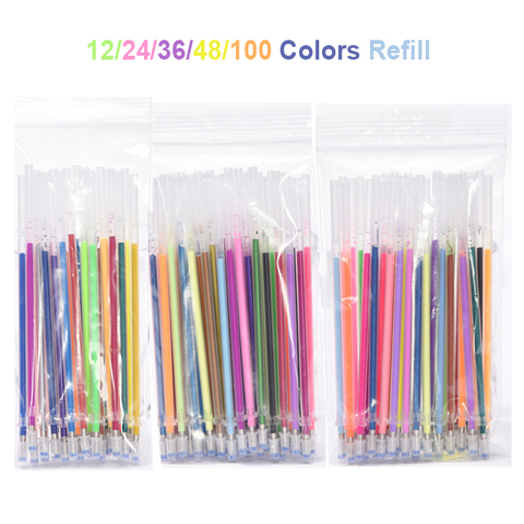 12/24/36/48/100 PCS/lot Multi-pluma de Gel de color recargas de dibujo y pintura brillo marcadores pluma arte marcadores escolares suministros de oficina